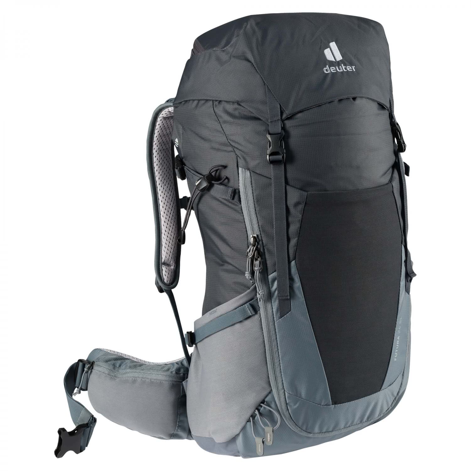 Komfortabel durchs Gelände: Dieser leichte und funktionelle Toploader für Frauen ist perfekt für längere Tageswanderungen, Bergtouren oder Klettersteige. Das neue ergonomische Aircomfort Sensic Netzrücken System macht den Futura leicht. Es schmiegt sich mit seiner neuen Passform komfortabel dem Rücken an und sorgt für maximale Rückenbelüftung. Dieses Modell ist als SL-Version verfügbar. Das frauenspezifische der SL-Rückenlänge zeigt sich bereits bei der Rückenlänge: Frauen haben im Durchschnitt einen nicht ganz so langen Rücken wie Männer. Das Tragesystem der SL-Modelle ist deshalb etwas kürzer angelegt als bei den Deuter Standard-Rucksäcken. Zudem ist das Tragesystem speziell an die weibliche Anatomie angepasst. Leistungsstarke Materialien mit PFC-freier schmutz- und wasserabweisender Impräginierung. Deuter Trinksystem kompatibel. Stretch-Innenfach und elastische Frontstecktasche. Stufenlos verstellbarer Brustgurt. Wanderstockhalterung und Schlaufen für Helmhalterung. Maße: 58 x 30 x 20 cm. Volumen: 24L. Gewicht: 1400g. Material: 60% Polyamid, 40% Polyester.