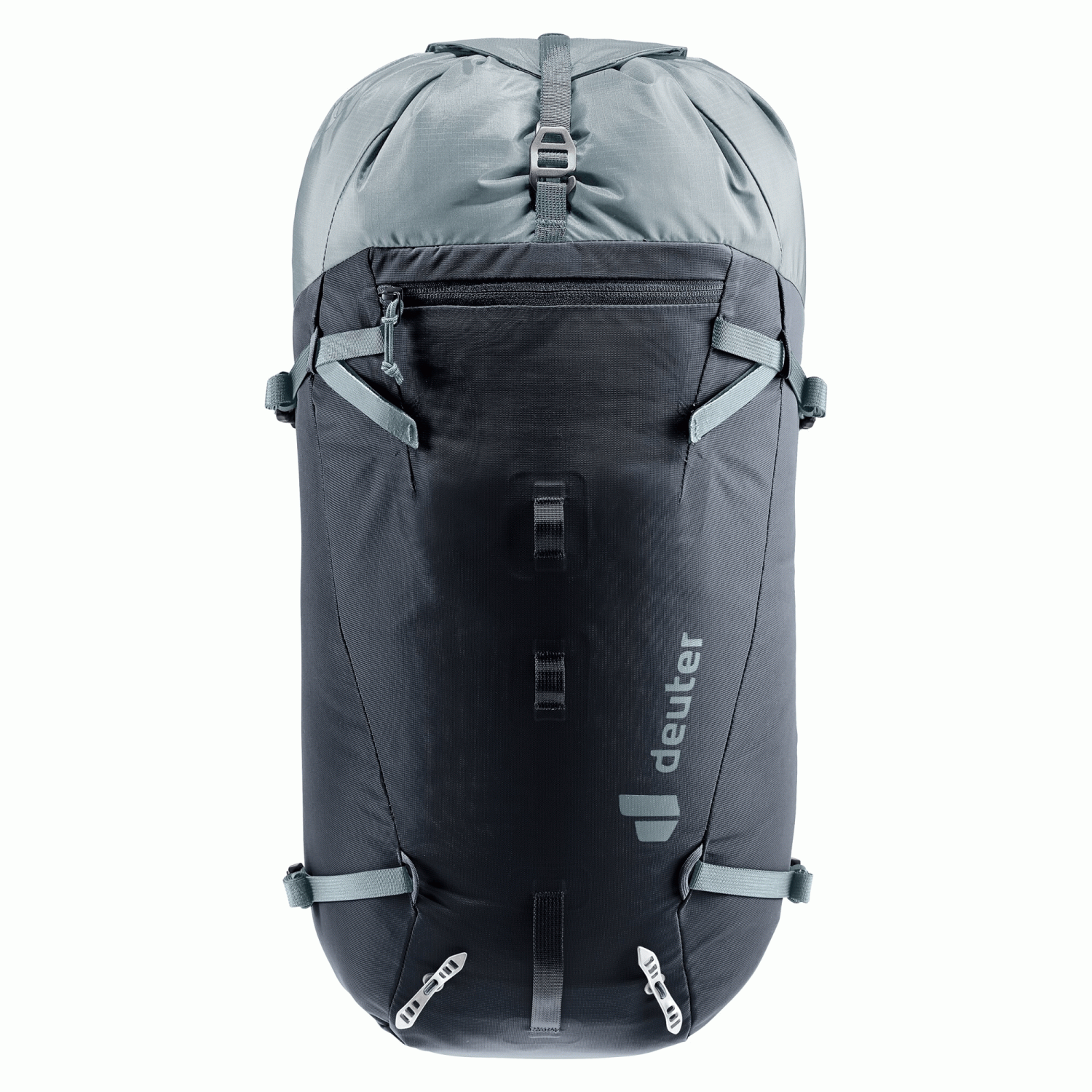 Deuter Rucksack Guide 30. Der klimaneutrale, PFC-freie Guide überzeugt durch niedriges Gewicht und zuverlässiges Handling. Robuste Materialien, hochwertige Verarbeitung, ausgefeilte Befestigungsmöglichkeiten für Pickel und Helm sowie die verstaubare Seilfixierung machen den Rucksack zum Klassiker für anspruchsvolle alpine Unternehmungen. Die Deckelkonstruktion erlaubt einen schnellen Zugriff auf das Hauptfach. Mit dem im Deckel integrierten, abnehmbaren Netz lässt sich der Helm je nach Bedarf entweder oben am Deckel oder an der Rucksackfront befestigen. Vorrichtung für Trinksystem (3.0 Liter). Volumen: 30L. Maße: 65 / 27 / 24 (HxBxT) cm. Material: 100% Polyester.