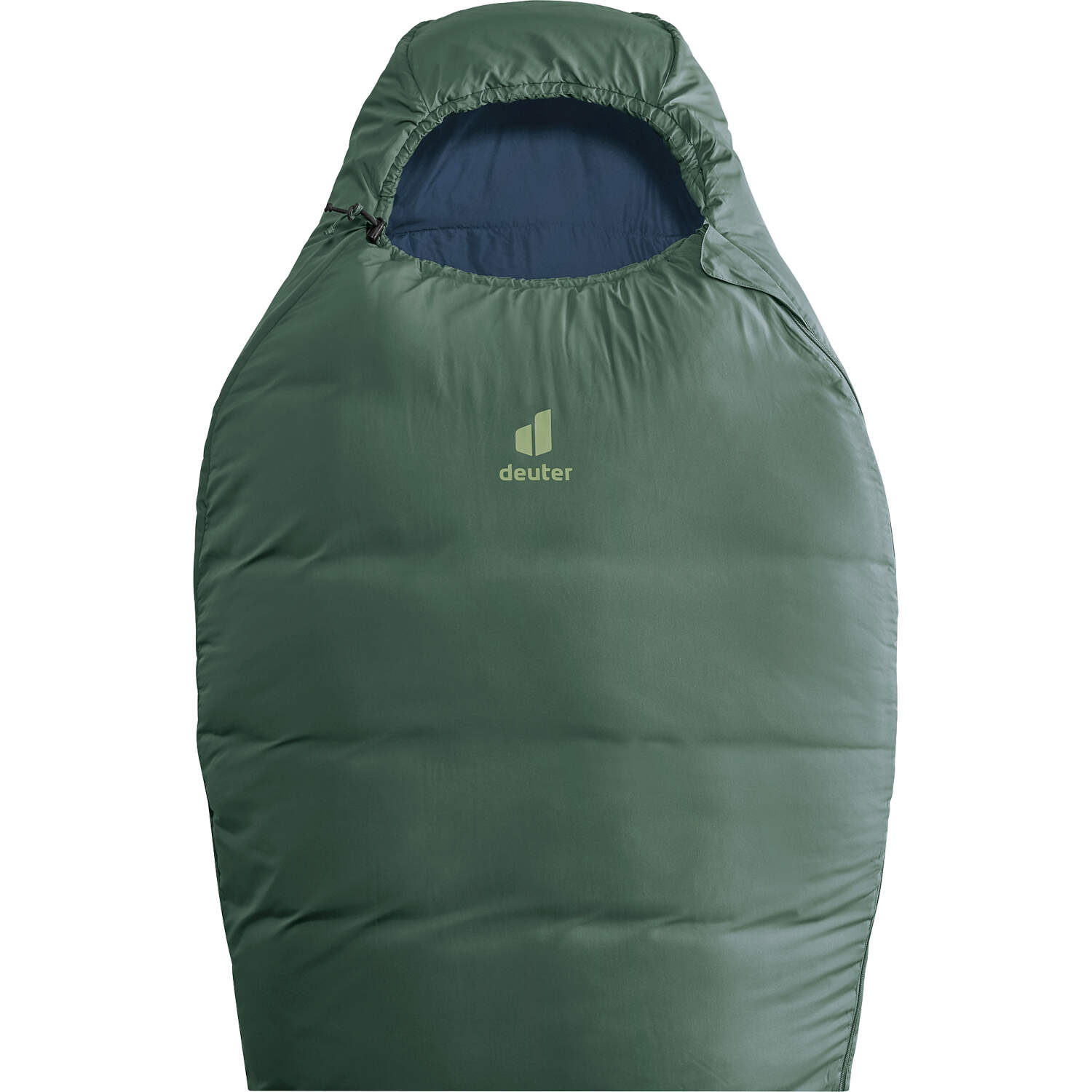 Deuter Schlafsack Orbit SL +5C/41F. Der Deuter Schlafsack Orbit SL +5°C (41°F) ist ein zuverlässiger Begleiter für sommerliche Outdoor-Abenteuer und überzeugt durch nachhaltige Materialien sowie durchdachte Details. Das nahtlose Außenmaterial aus 100 % recycelten Stoffen bietet eine verbesserte Temperaturperformance und schützt effektiv vor dem Eindringen von Nässe. Dank der 360°-Verteilung der HighLoftHollowFibre-Füllung entsteht ein gleichmäßiges, angenehmes Wärmeklima im gesamten Schlafsack. Zusätzliche BodyWarmer-Fleece-Einsätze und eine spezielle FootWarmer-Isolierung erhöhen den Komfort spürbar. Der Mumien-Komfortschnitt sorgt für eine optimale Passform bei einer maximalen Körpergröße von 175 cm, während der 7/8-lange 2-Wege-Reißverschluss mit Klemmschutz eine einfache Handhabung ermöglicht. Eine praktische Innentasche bietet Platz für Wertsachen. Mit einem Gewicht von 1000 g (plus 46 g Packsack), bluesign®-zertifizierten Materialien und einer robusten 1-Lagenkonstruktion ist der Orbit SL langlebig, strapazierfähig und nachhaltig produziert. Temperaturwerte: Komfort 9 °C, Limit 5 °C, Extrem -9 °C. Ideal für alle, die im Sommer erholsam und umweltbewusst unterwegs sein möchten.