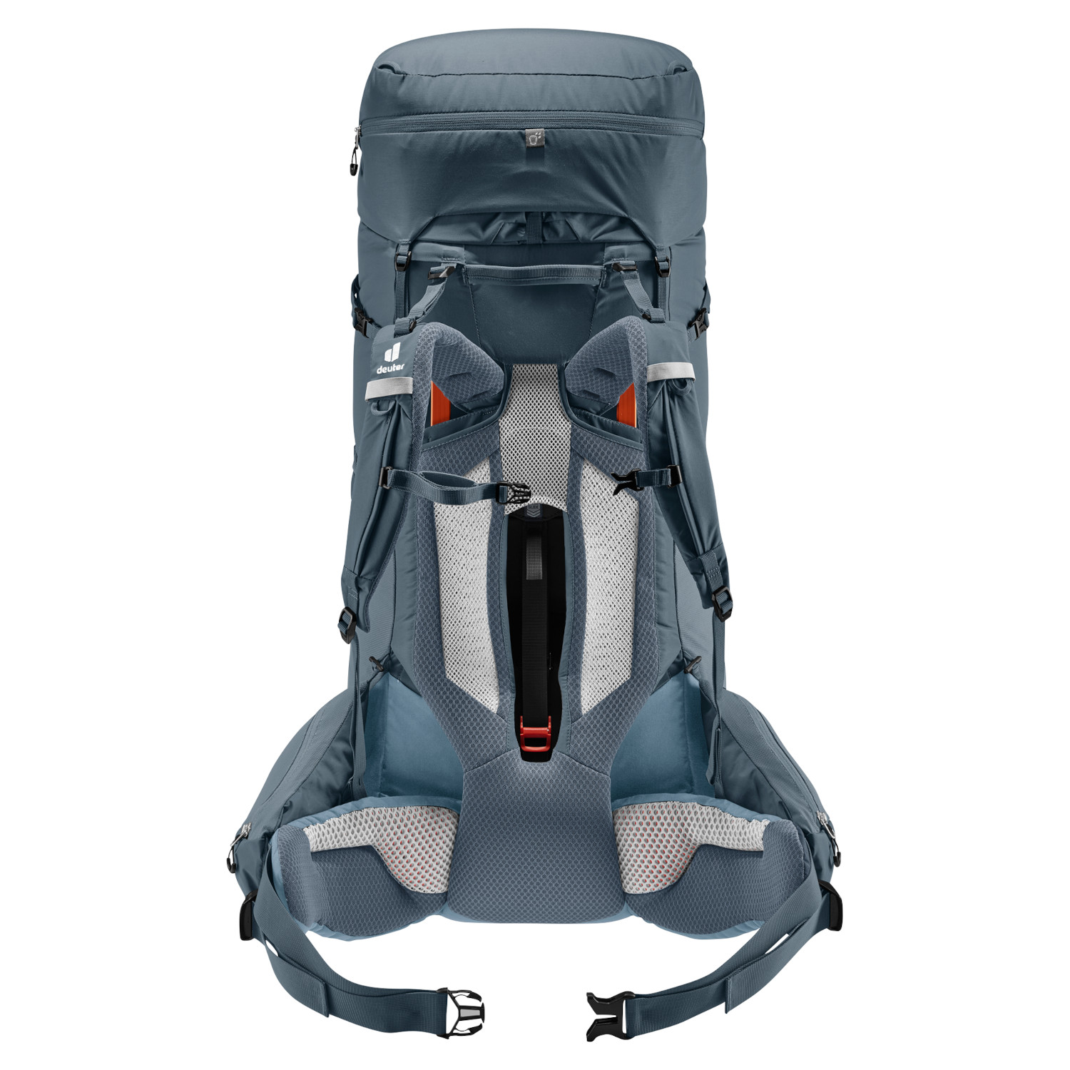 Deuter Rucksack Aircontact Core. Für hohen Tragekomfort und optimale Lastverteilung sorgen das Aircontact-Rückensystem mit Air Spacer Mesh und großem Belüftungskanal, die bequemen Schulterträger, die beweglichen Hüftflossen und das ergonomische Lumbalpad. Eine große, J-förmige Frontöffnung gewährt mühelosen und schnellen Zugang auf den Rucksackinhalt. Zudem bieten die abnehmbaren 3 Liter Hüftflossentaschen mehr Volumen für persönliche Gegenstände. Und auch Trinkflaschen bis 1,5 Liter finden in einer ausklappbaren Tasche Platz. Maße: 86 x 32 x 30cm. Volumen: 80 Liter. Material: 100% Polyamid.