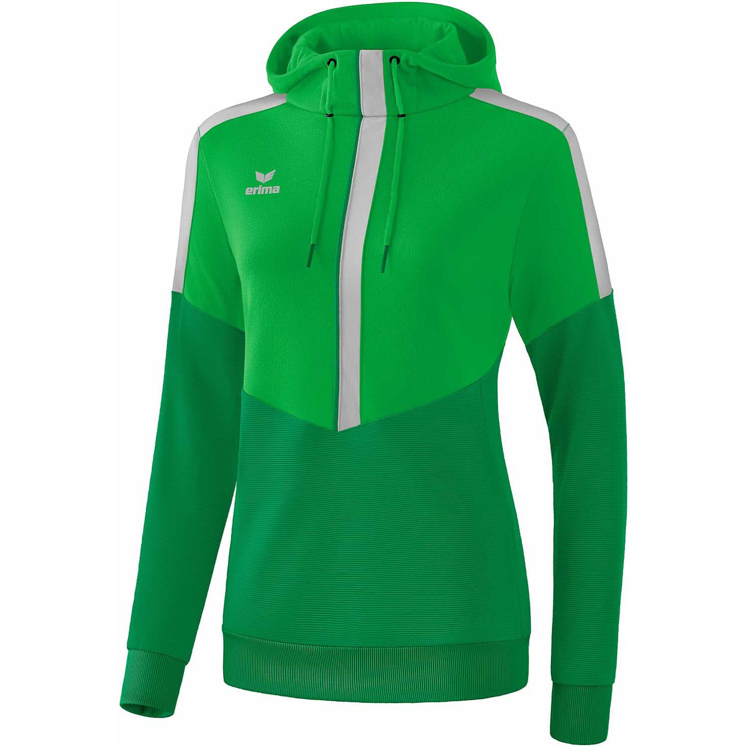 erima Damen Kapuzensweat Squad. Volle Funktion mit Baumwollgefühl. Weiches Funktionsmaterial. Cotton Touch für ein angenehmes Tragegefühl. Hoher Kragen mit Kapuze und Kordelzug. Rippbündchen an Ärmel und Saum. Integrierte Kängurutasche. Taillierter Schnitt. Material: 100% Polyester.