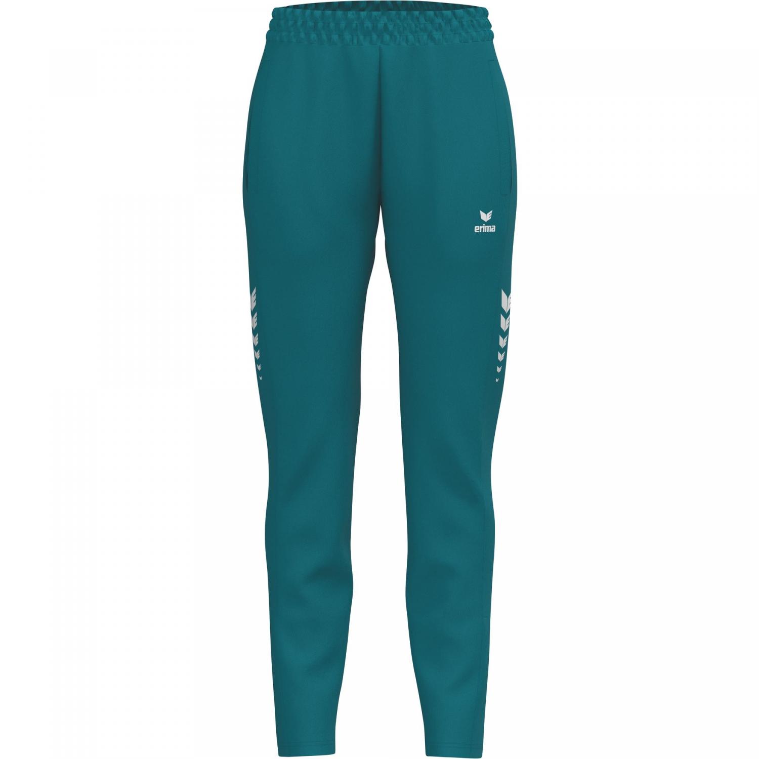 Die erima Damen Trainingshose CELEBRATE 125 Training Pants ist ideal für intensive Trainingseinheiten und überzeugt durch Funktionalität und hohen Tragekomfort. Das gestrickte Funktionsmaterial sorgt für ein angenehmes Tragegefühl und optimale Bewegungsfreiheit. Das schmal zulaufende Bein mit Reißverschlussabschluss erleichtert das An- und Ausziehen und bietet eine moderne, sportliche Passform. Der elastische Bund mit innenliegender Kordel ermöglicht einen sicheren und individuell anpassbaren Sitz. Praktische, seitlich verdeckte Reißverschlusstaschen bieten Platz für kleine Gegenstände, während die seitlichen Einsätze mit ERIMA 6 WINGS Druck dem Design einen dynamischen Look verleihen. Material: 100% Polyester.