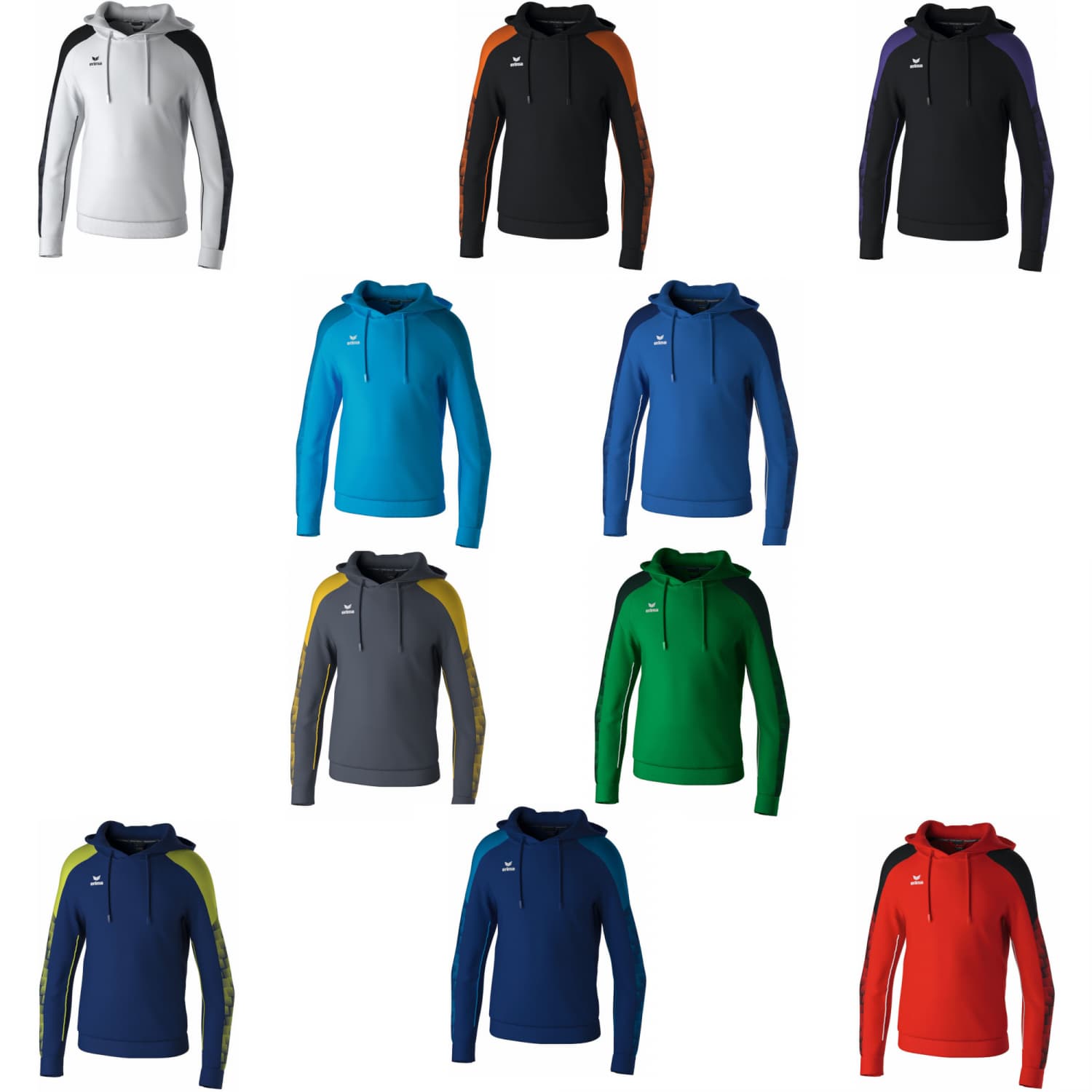 erima Kinder EVO STAR Kapuzensweat. Bequemes Kapuzensweat für Sport und Alltag. Weiches Funktionsmaterial. Raglanschnitt und elastische Einsätze für volle Bewegungsfreiheit. Eingearbeitete Kängurutasche. Gefütterte Kapuze ohne Kordelzug. Breite Rippbündchen an Ärmel und Saum. Stylisches Design an den Ärmeln mit 3D Effekt. Kontrastfarbenes Piping an den Ärmeln. Material: 100% Polyester.