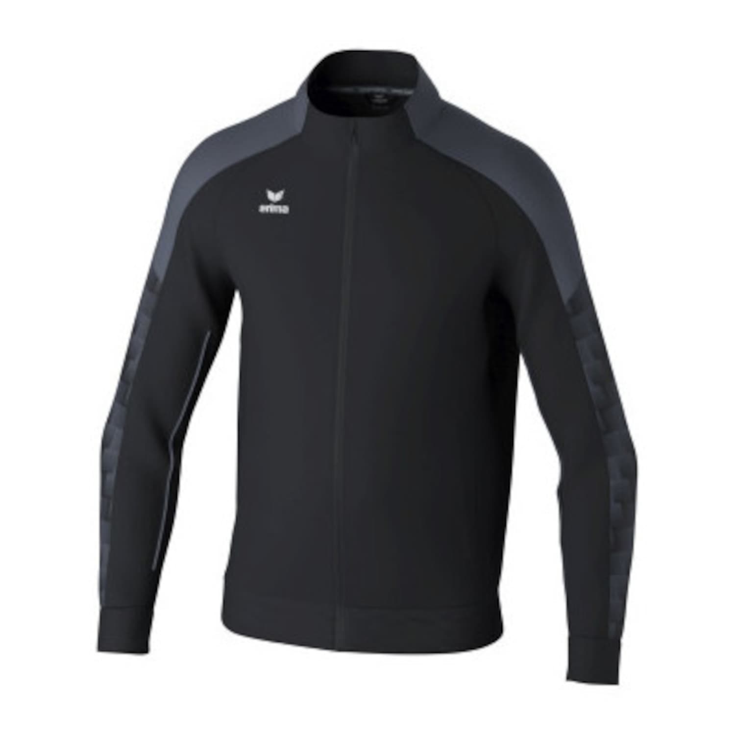 erima Kinder EVO STAR Trainingsjacke. Robust & funktionell – perfekt für dein Training. Strapazierfähiges Funktionsmaterial. Raglanschnitt und elastische Einsätze für volle Bewegungsfreiheit. Breite Rippbündchen an Ärmel und Saum. Stehkragen mit Kinnschutz. Seitlich verdeckte Reißverschlusstaschen. Stylisches Design an den Ärmeln mit 3D Effekt. Kontrastfarbenes Piping an den Ärmeln. Material: 100% Polyester.