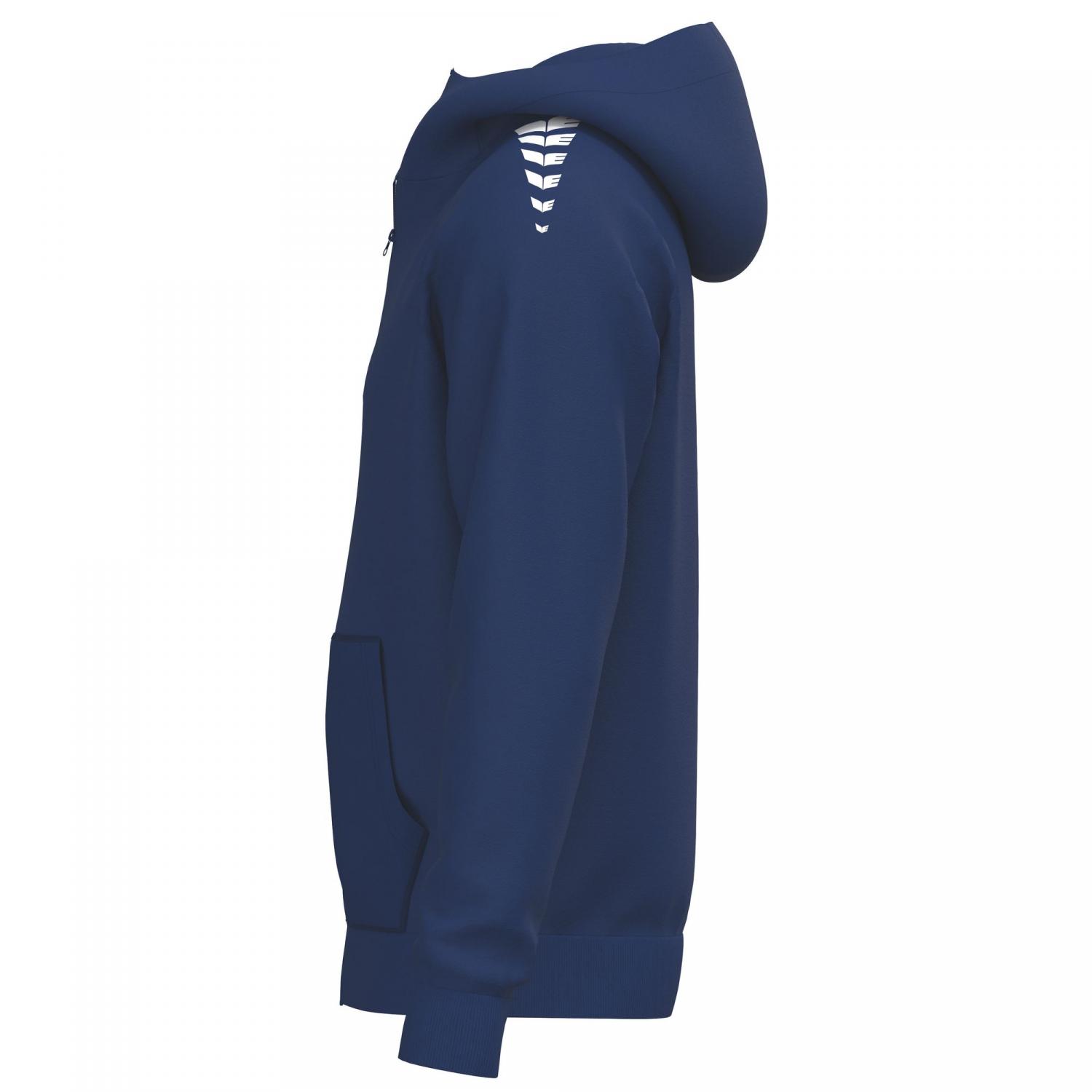 Die erima Kinder Kapuzenjacke CMPT Wings Hoody Jacket ist ein vielseitiges Basic für Sport und Alltag. Der strapazierfähige Materialmix mit Diagonal Fiber Cut sorgt für Langlebigkeit und angenehmen Tragekomfort. Die gefütterte Kapuze bietet zusätzlichen Schutz, während die Kängurutasche praktische Funktionalität und warme Hände garantiert. Gerippte Bündchen und Saum sorgen für einen optimalen Sitz. Der markante ERIMA 6 WINGS Druck auf den Schultern verleiht der Jacke einen sportlichen Look. Mit einem Gewicht von ca. 300 g/m² bietet sie eine hochwertige, angenehme Qualität. Material: 57% Polyester, 43% Baumwolle.