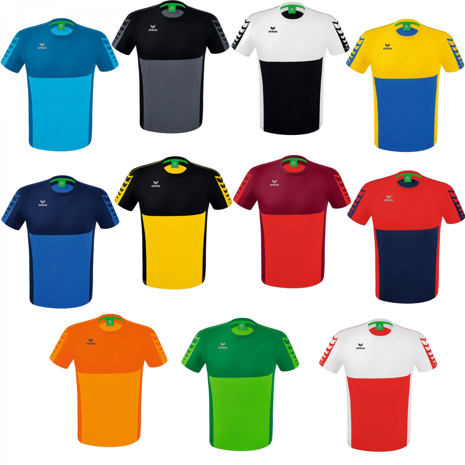 erima Kinder T-Shirt Six Wings. Klassisch und funktionell! Mit dem T-Shirt sind du und dein Team jederzeit gut ausgerüstet. Leichtes, schnelltrocknendes Funktionsmaterial. Gerippter Rundhalsausschnitt. ERIMA Schwingen-Design auf der Schulter. Material: 100% Polyester.