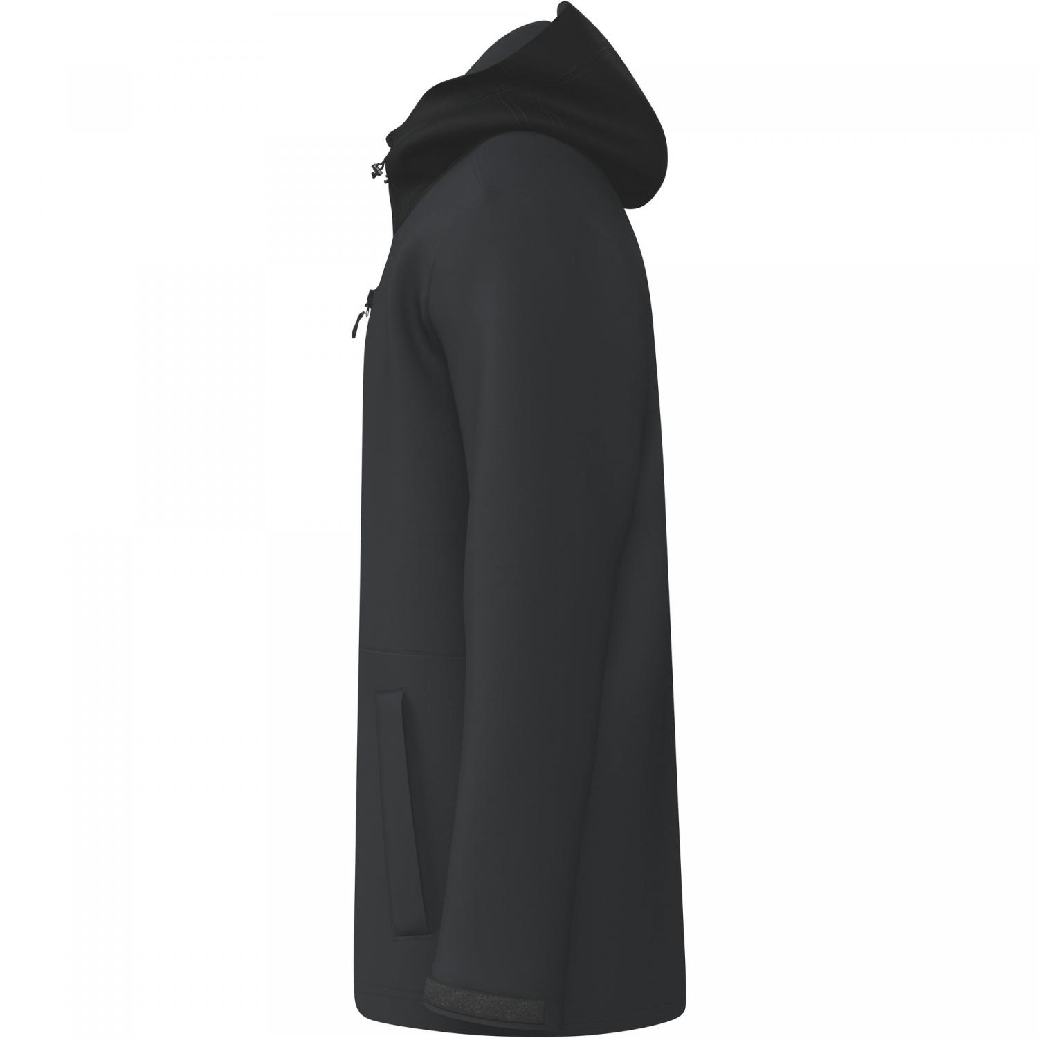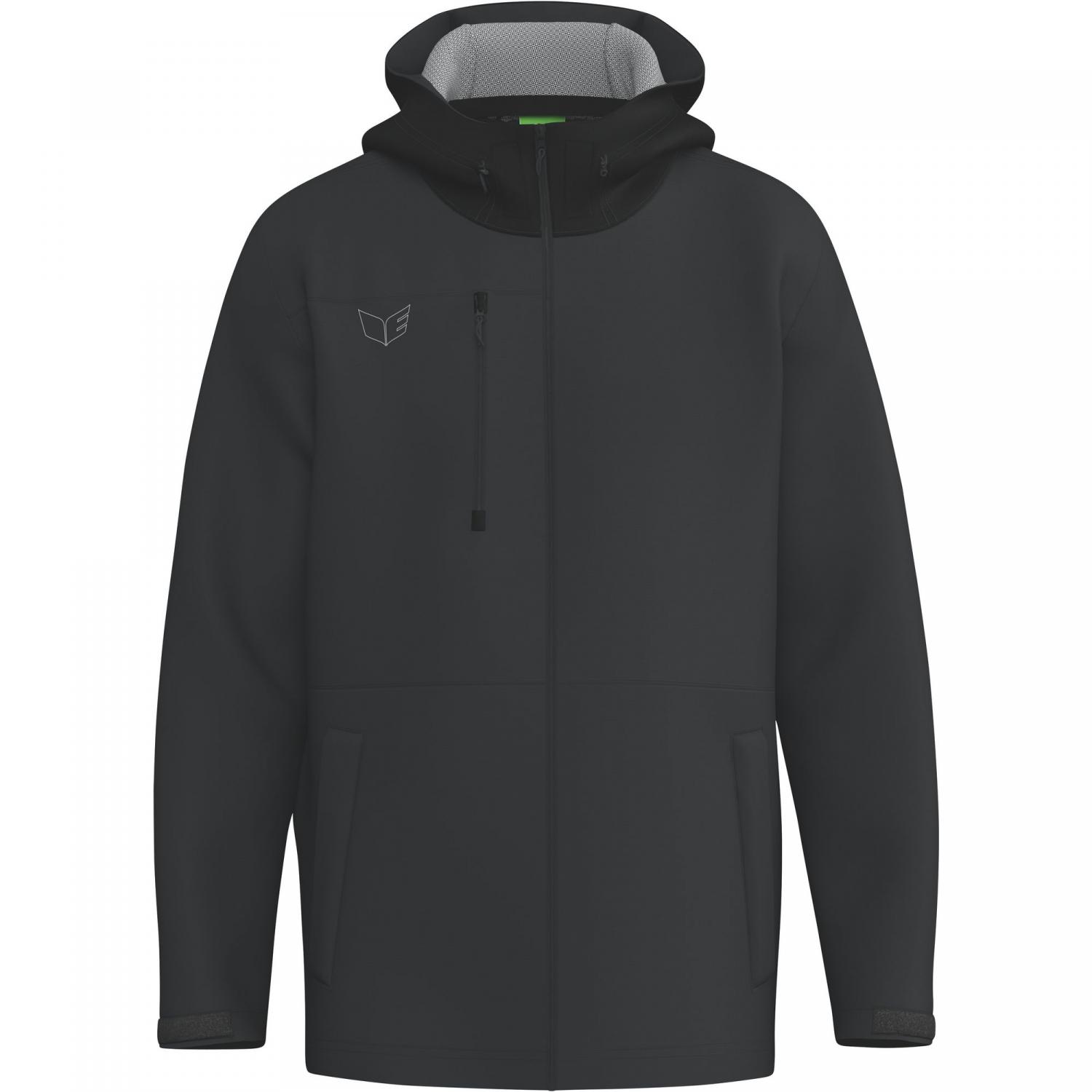 Die erima Unisex Regenjacke PREMIA Hydro Jacket überzeugt durch edles Design und höchste Funktionalität. Die wasserdichte und atmungsaktive 2,5-Lagen Membran mit einer Wassersäule von 10.000 mm sowie einer Atmungsaktivität von 10.000 g/m²/24h sorgt für optimalen Schutz bei jedem Wetter. Das flexible 4-Wege-Stretch-Material bietet maximale Bewegungsfreiheit und hohen Tragekomfort. Ausgestattet mit einer Brusttasche sowie seitlichen, überdeckten Reißverschlusstaschen und vollständig wasserdichten Reißverschlüssen, ist die Jacke besonders praktisch. Die zweifach regulierbare Kapuze mit reflektierendem Kordelband, Lüftungsöffnungen mit Reißverschluss unter den Armen und Klettverschlüsse an den Ärmeln sorgen für zusätzliche Funktionalität. Das ERIMA Schwingen-Design auf der Brust setzt einen sportlich eleganten Akzent. Mit einem Gewicht von ca. 94 g/m² ist die Jacke angenehm leicht. Als Unisex-Artikel geschnitten, empfiehlt es sich für Damen, eine Größe kleiner zu wählen. Material: 100 % Polyester.