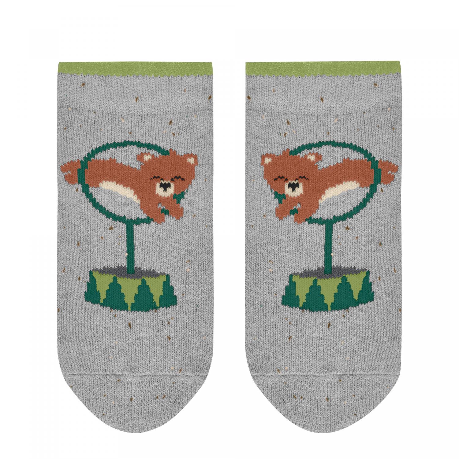 Dieser Baby-Vollplüsch-Hausstrumpf versetzt die Kleinsten direkt in Zirkusatmosphäre. Der auf der Frontseite platzierte süße Bär verwirklicht seine Träume und tritt als Zirkusartist auf. Er springt durch einen Ring und verbreitet Freude und Staunen. Der rutschhemmende Noppendruck in Form von kleinen Sternen sowie der Einsatz eines besonderem Tweed-Garns runden das Design perfekt ab. Die Qualität aus hautschmeichelnder, nachhaltiger Baumwolle und Viskose sowie die perfekte FALKE-Passform garantieren einen optimalen Tragekomfort. Material: 42% Baumwolle, 36% Viskose, 19% Polyamid, 2% Seide, 1% Elasthan.