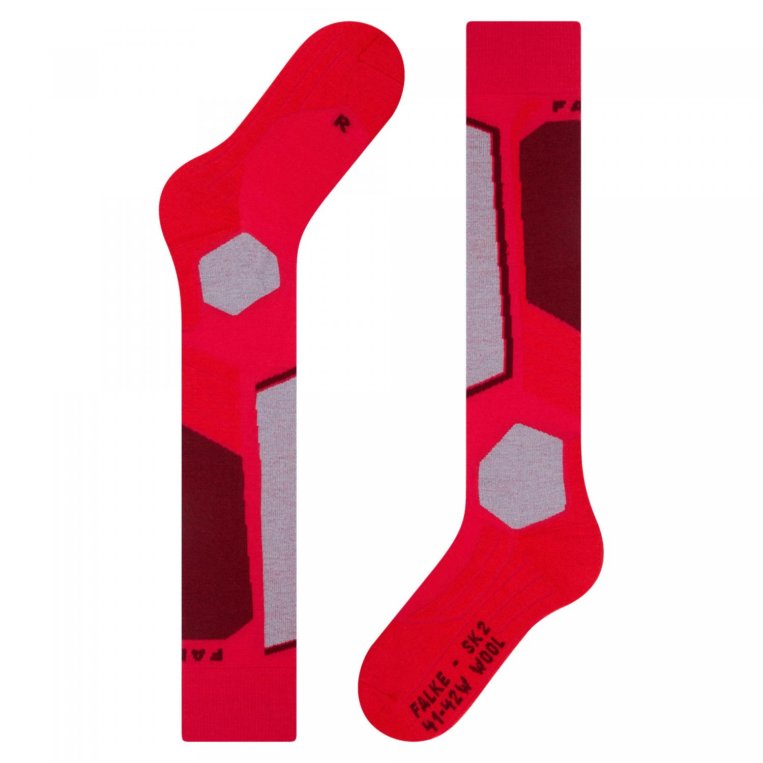 Falke Damen Ski Socken SK2 Wool. Unser Allrounder-Skistrumpf 'SK2 Wool' ist optimal für jede Freizeit-Skifahrerin. Er sorgt mit seiner mittelstarken Polsterung für hohen Schutz und ausgewogenen Schuhkontakt. Mit seinem extra hohen Merinowoll-Anteil ist der 'SK2 Wool' bestens wärmeisoliert. Schneller Wärme- und Feuchtigkeitstransport sowie die optimale Passform garantieren hohen Komfort und einen angenehmen Skitag. Material: 75% Schurwolle, 25% Polyamid.