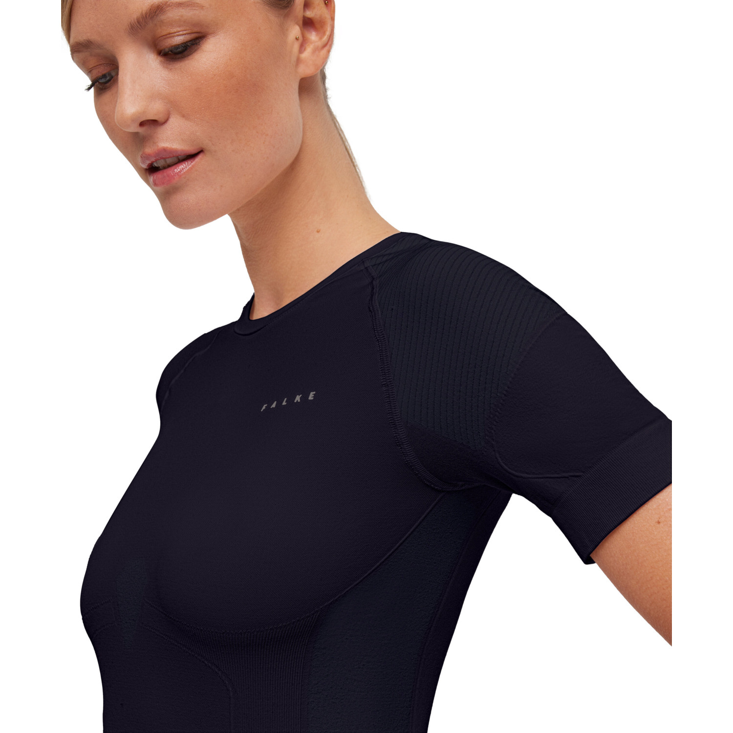 Falke Damen T-Shirt Warm. Das Kurzarm-Shirt in neuem, sportlichem Design und körpernaher Passform hält den Körper bei warmen bis kalten Temperaturen trocken und angenehm temperiert. Die Kombination aus hochwertigsten, recycelten Materialien sorgt für perfekte Feuchtigkeits- und Temperaturregulierung. Die optimale Passform garantiert maximale Bewegungsfreiheit. Material: 69% Polyamid, 26% Polyester, 5% Elasthan.