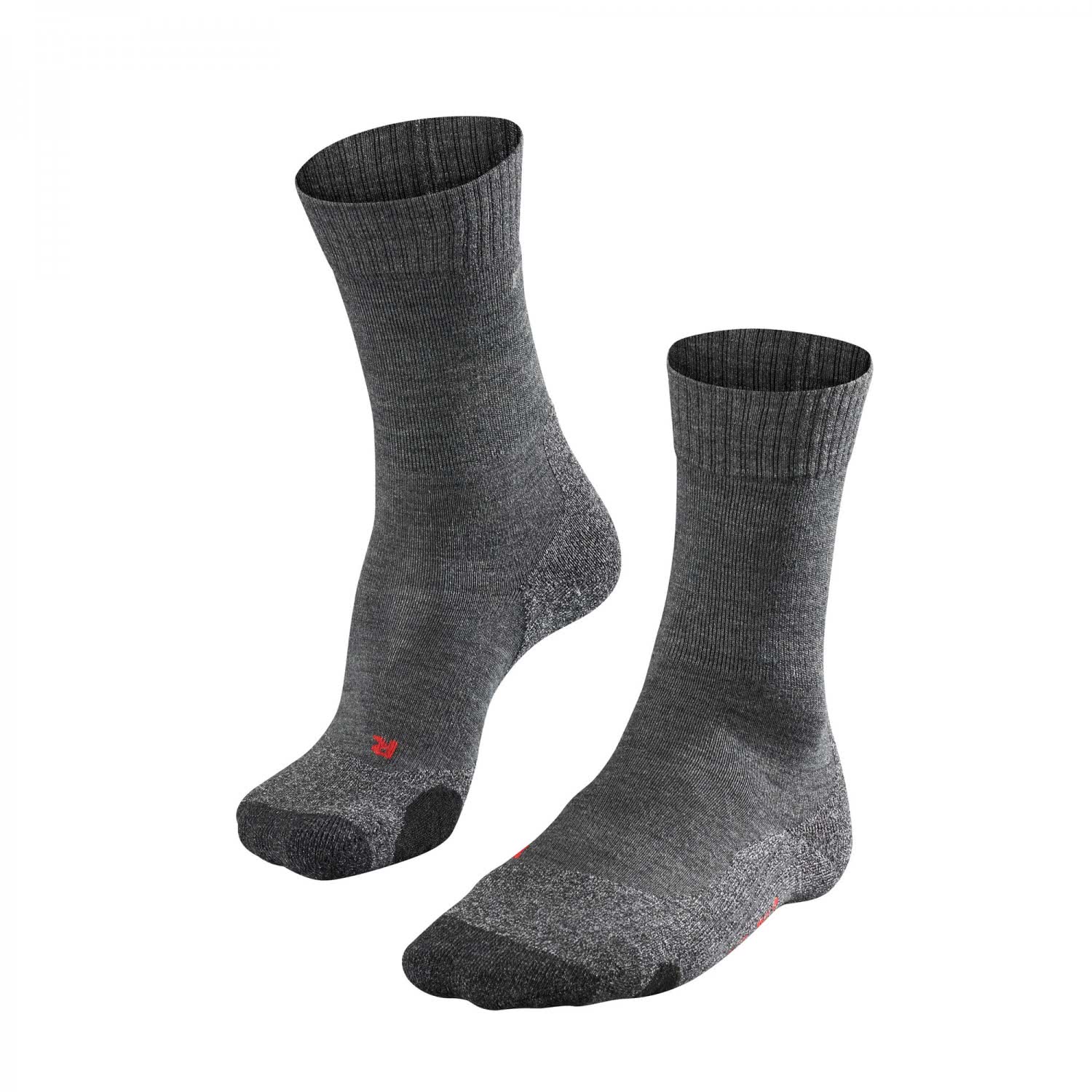 Falke Damen Trekking Socken TK2. Der Weg ist das Ziel. Ein Trekkingschuh muss extrem viel aushalten, ein Strumpf darin noch viel mehr! Durch eine optimale Druckverteilung und Reduzierung der Druckspitzen dämpft und entlastet der TK2 Sie optimal beim Trekking. Ein hoher Merinowoll-Anteil gewährleistet einen angenehmen Tragekomfort. Zudem sorgen die raumausgleichenden, gelenkschonenden Polster für ein dauerhaftes Wohlgefühl und ein schmerzfreies Gehen. Frauen haben bei vergleichbarer Schuhgröße bis zu 30% weniger Volumen, weswegen dieser Strumpf speziell an die schlanke, weibliche Fußform angepasst wurde. Material: 28% Polyacryl, 22% Wolle, 9% Polyamid, 40% Polypropylen, 1% Elasthan.