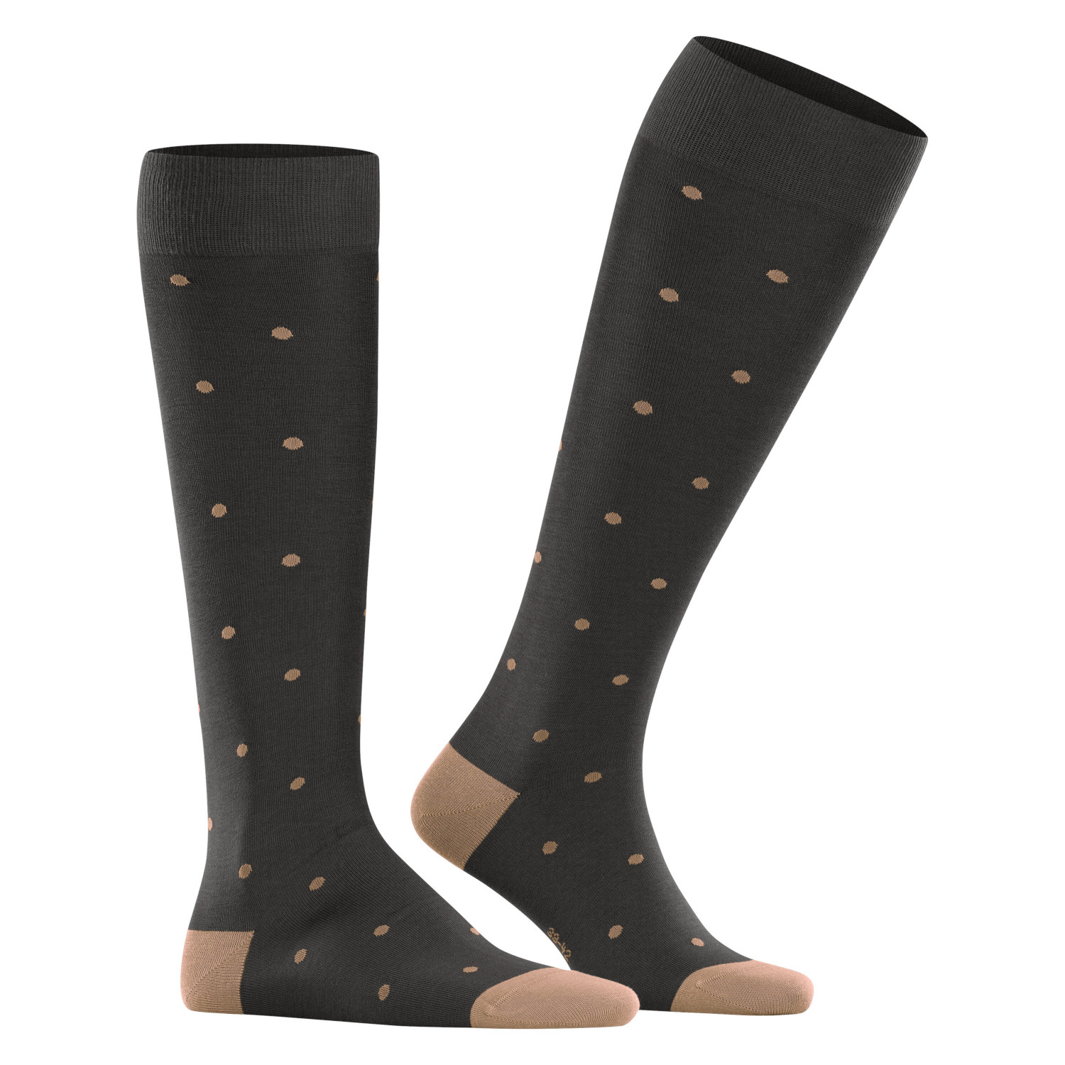 Falke Herren Kniestrümpfe Dot KH. Business-Kniestrumpf aus feiner, merzerisierter Baumwolle auf der Außenseite und weicher gekämmter Baumwolle auf der Innenseite mit einer zeitlosen Punkte-Musterung. Optimale Haltbarkeit durch verstärkte Belastungszonen. Material: 88% Baumwolle, 12% Polyamid.