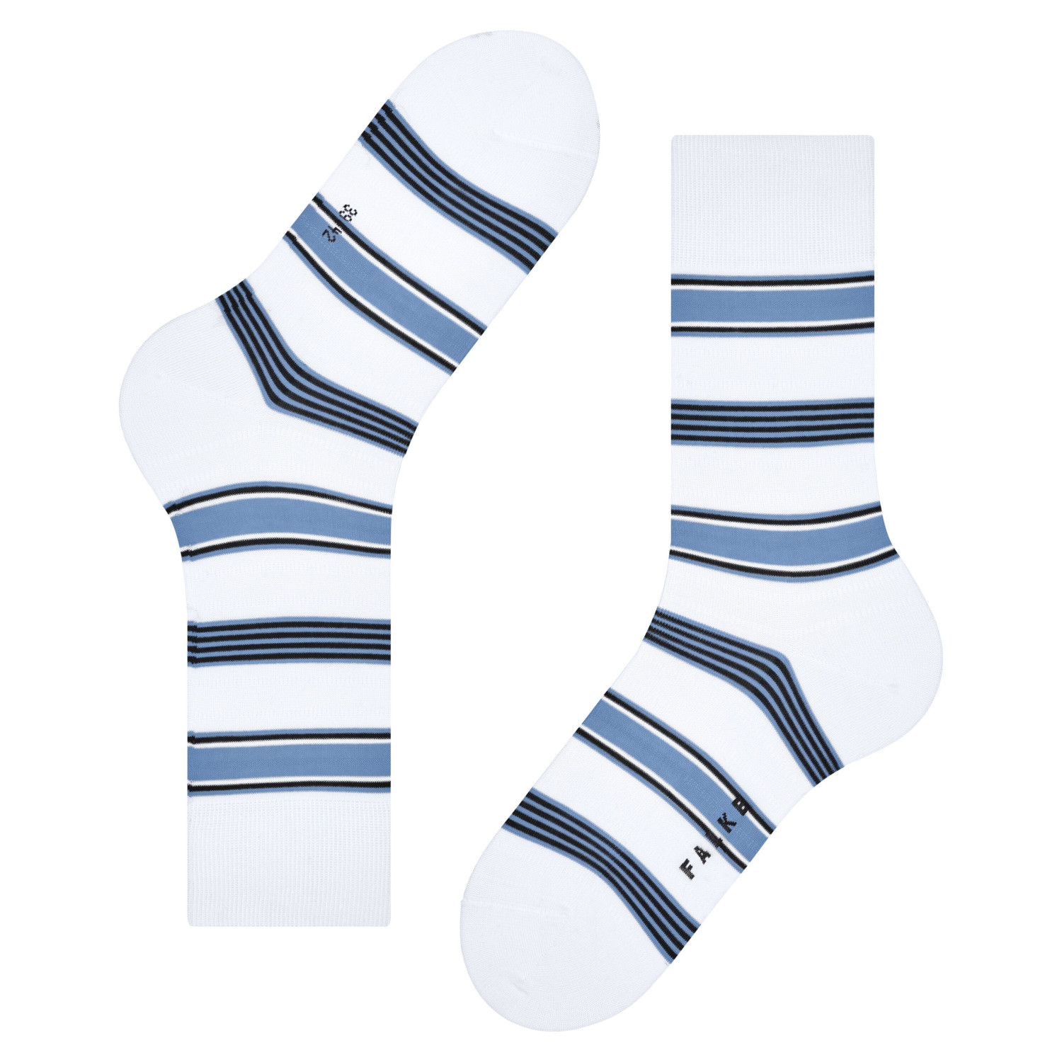 Falke Herren Socken Marina Stripe. Der Marine-Look als All-time-Favorite: Diese moderne Interpretation des klassischen Streifenmusters besticht durch seine raffinierte, maritime Farbauswahl in Kombination mit unterschiedlich breiten Streifen. Der Strumpf ist vielseitig kombinierbar und perfekt zu modernen Outfits, für die Freizeit sowie für das Büro. Durch den Einsatz von hautschmeichelnder und gekämmter Bio-Baumwolle stechen die Streifen des Strumpfes mit ihrer hohen Farbbrillanz auf dem fein gestrickten Grund sofort ins Auge. Ergänzt um die perfekte FALKE-Passform und verstärkte Belastungszonen sind sowohl optimaler Halt als auch optimale Haltbarkeit garantiert. Material: 92% Baumwolle, 6% Polyamid, 2% Elasthan.
