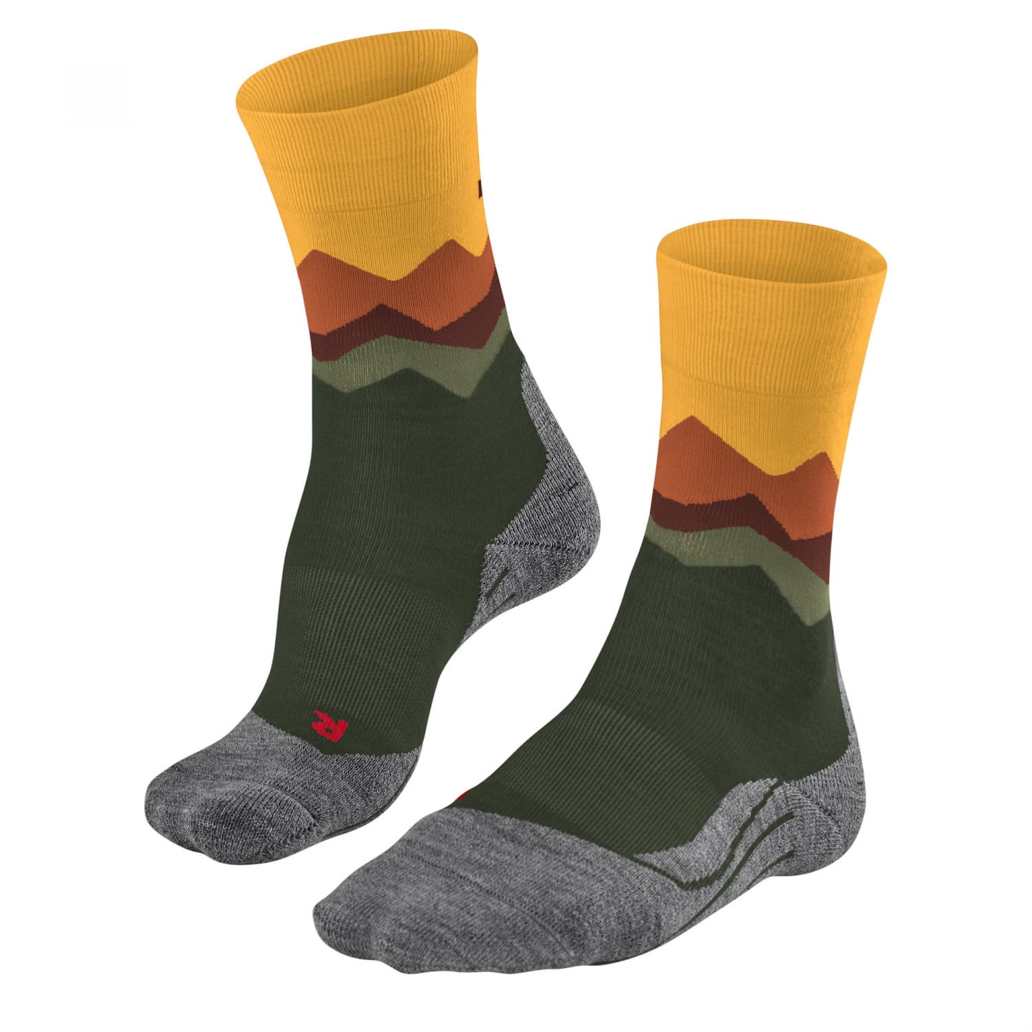 Der ''TK2 Crest“ mit mittelstarker Polsterung und einem Merinowoll-Mix sorgt für besten Komfort und gute Wärmeisolation bei Wanderungen in leichtem Gelände und bei jeglichen Wetterbedingungen. Der schnelle Feuchtigkeitstransport sowie die gute Passform sorgen für die Temperatur und hohen Komfort am Fuß. Durch die in den Schaft eingearbeitete Bergsilhouette in verschiedenen Farbschattierungen ist die Wandersocke ein echter Hingucker. Material: 43% Polypropylen, 22% Polyamid, 19% Polyacryl, 16% Wolle.