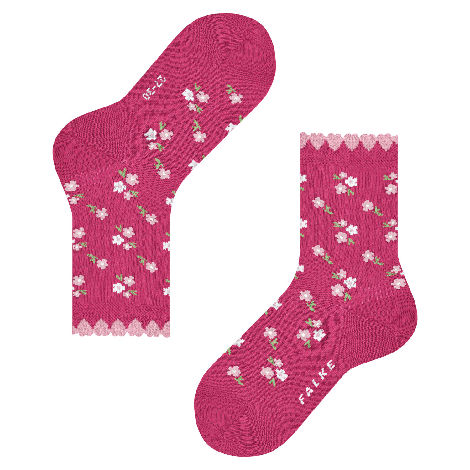 Falke Mädchen Socken Ditsy Flowers. Mädchenhaftes, romantisches Design und hoher Tragekomfort vereinen sich in diesem Style. Der Kinder-Strumpf aus hautschmeichelnder Baumwolle überzeugt durch sein besonderes, elegantes Design mit dezenten Blumenmotiven und dem verspielten Abschlussrand in Form von Herzchen. Durch die hautschmeichelnde Baumwolle sowie der perfekten FALKE-Passform ist ein komfortables Tragegefühl garantiert. Material: 74% Baumwolle, 24% Polyamid, 2% Elasthan.