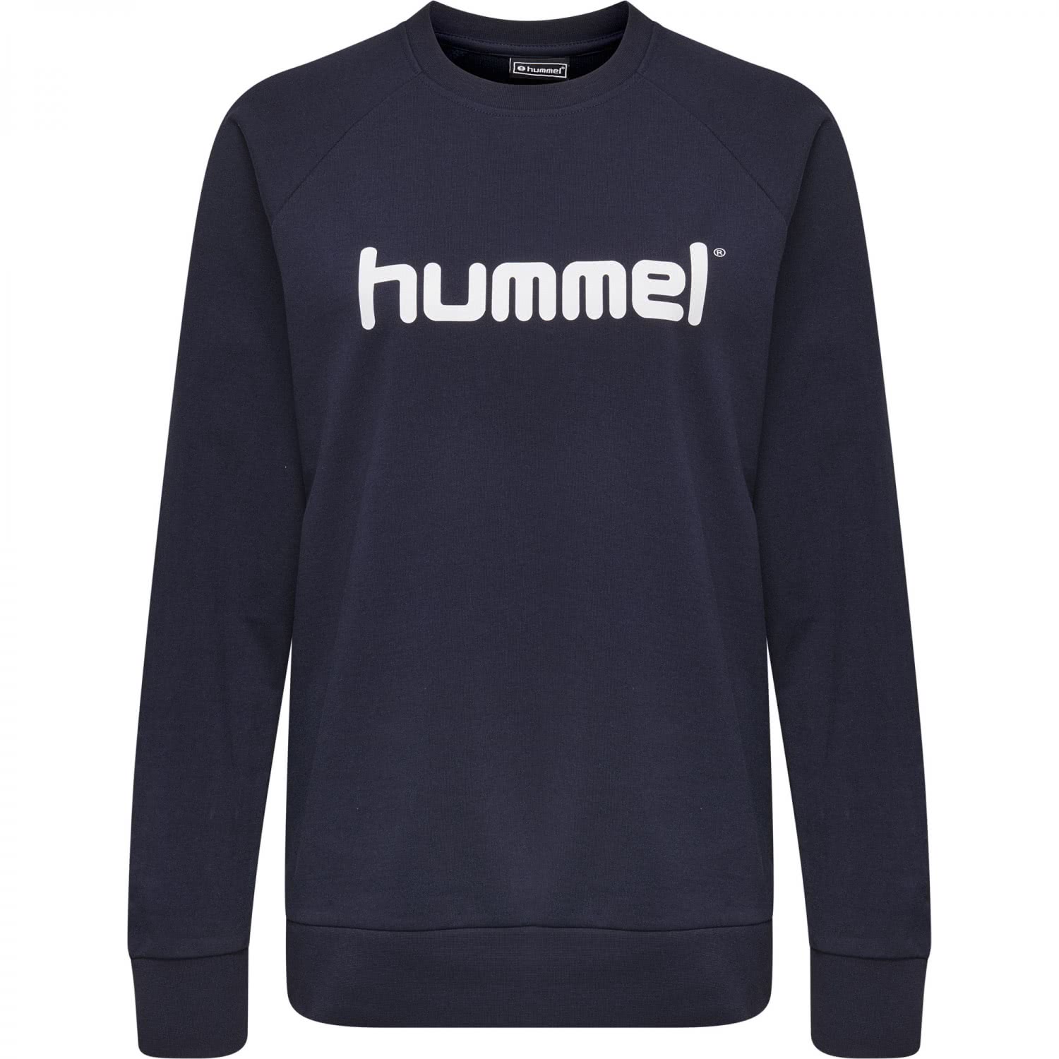 Hummel Damen Pullover Go Cotton Logo Sweatshirt Woman. Mit einem auffälligen hummel®-Print vorne und Raglanärmel sowie gerippten Bündchen und Saum bietet dieses weiche Sweatshirt einen klassischen, gut aussehenden Girl-Next-Door-Style. Basic Damen Sweatshirt für Sport und Freizeit. Komfortables, weiches Baumwollmaterial. Taillierter Damenschnitt. Ärmel- und Saumabschluss mit Rippbündchen. Logodruck auf Wasserbasis. Regular Fit. Material: 80% Baumwolle, 20% Polyester.