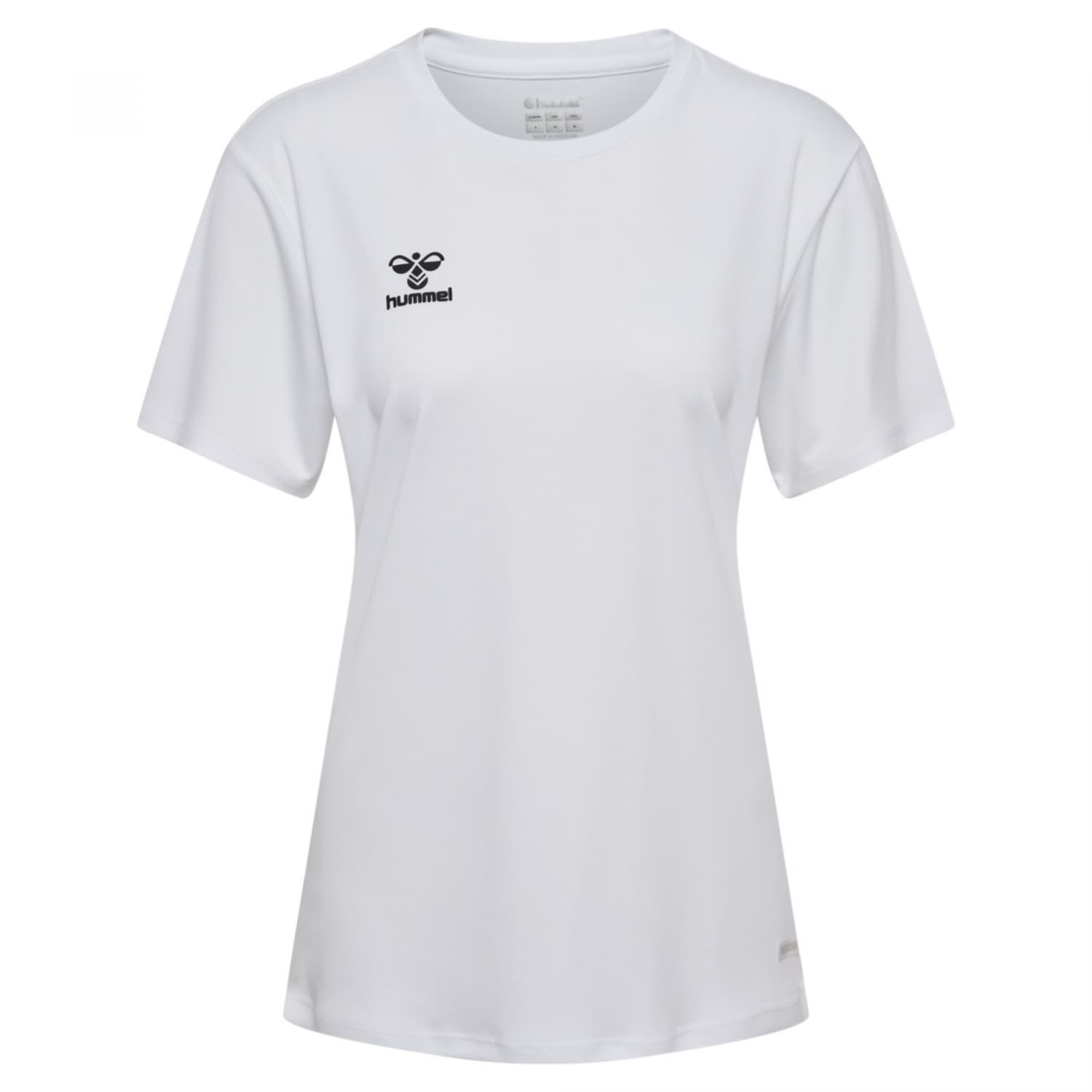 Hummel Damen Trikot hmlEssential s/s Jersey. Das hmlESSENTIAL JERSEY WOMAN S/S besteht aus flexiblem Interlock-Gewebe mit glatter Oberfläche und verfügt über atmungsaktive BEECOOL®-Technologie mit schnell trocknenden Eigenschaften, damit Kinder während des Trainings kühl und trocken bleiben. Dieses klassische Hummel-T-Shirt-Design hat kurze Ärmel und einen Rundhalsausschnitt. Es hat eine bequeme, normale Passform und besteht aus recyceltem Polyester, während das aufgedruckte Logo auf der Brust dem Oberteil einen schönen Kontrast verleiht. Material: 100% Polyester.