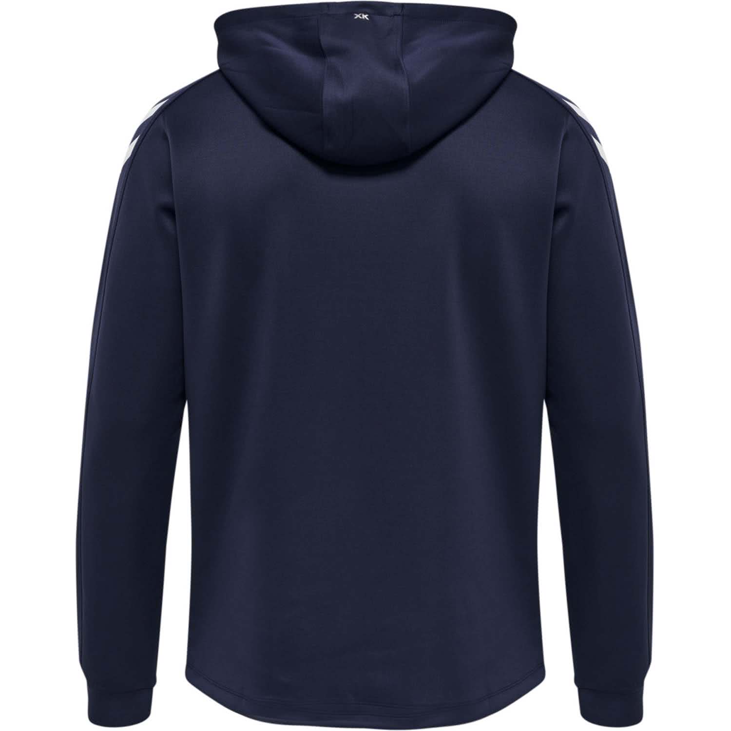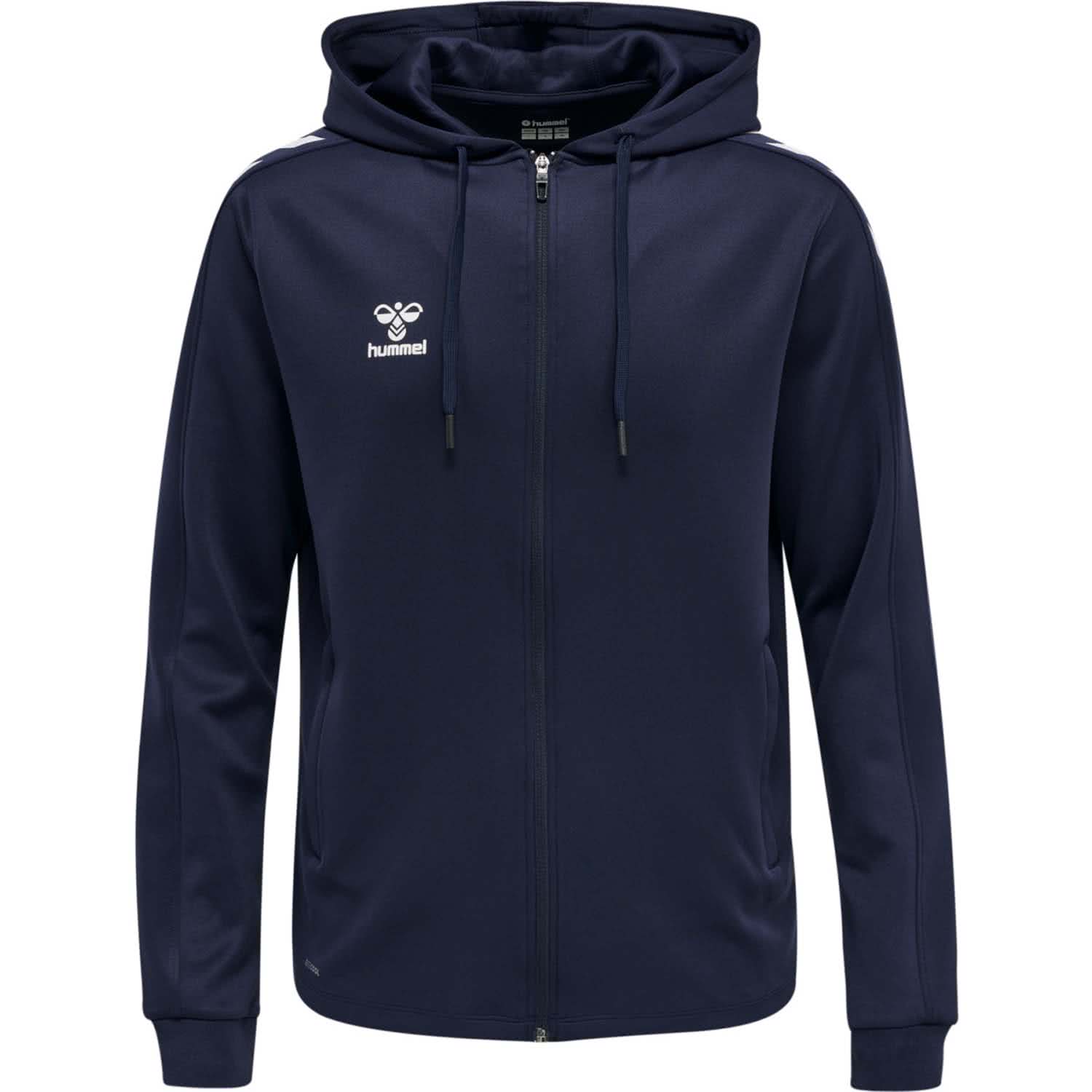 Hummel Herren Kapuzenjacke Core XK Poly Zip Hood Sweat. Mit dem hmlCORE XK POLY ZIP HOOD SWEAT bist du beim Training für jedes Wetter gerüstet. Der mit BEECOOL® Technologie behandelte Sweatstoff sorgt für ein trockenes und frisches Tragegefühl mit zusätzlicher Atmungsaktivität. Der Frontreißverschluss und die Kapuze mit Kordelzug bieten vielseitige Tragemöglichkeiten. Der Bund ist elastisch und gewährleistet Flexibilität und Komfort, damit du dich voll und ganz auf deine Übungen konzentrieren kannst. Der hummel® Logoaufdruck und die legendären Winkel verleihen diesem unverzichtbaren Trainingshoodie einige raffinierte Details. Material: 98% Polyester, 2% Elasthan.