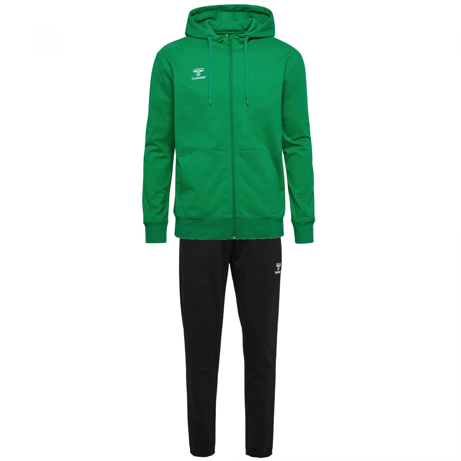 Hummel Herren Trainingsanzug hmlGO 2.0. Der Hummel GO 2.0 Trainingsanzug für Herren. Der Anzug besteht aus einer Kapuzenjacke und einer Trainingshose. Jacke: Der hmlGO 2.0 ZIP HOODIE ist ein Kapuzenpullover mit durchgehendem Reißverschluss vorne, der an kühlen Tagen einen weichen Tragekomfort bietet. Es besteht aus Sweatstoff aus Bio-Baumwolle und recyceltem Polyester. Dieser Kapuzenpullover mit Reißverschluss verfügt über einen verstellbaren Kordelzug an der Kapuze, Seitentaschen und ein gesticktes Logo auf der Brust. Hose: Die hmlGO 2.0 SWEATPANTS sind für Sport bei kälterem Wetter gemacht. Diese bequemen Jogginghosen sind aus einem weichen Sweatstoff mit Bio-Baumwolle und recyceltem Polyester gefertigt und verfügen über einen elastischen Bund für einfaches Tragen und Passform sowie elegante Seitentaschen. Komplettiert mit einem gestickten Logo am Bein. Material: 80% Baumwolle, 20% Polyester.