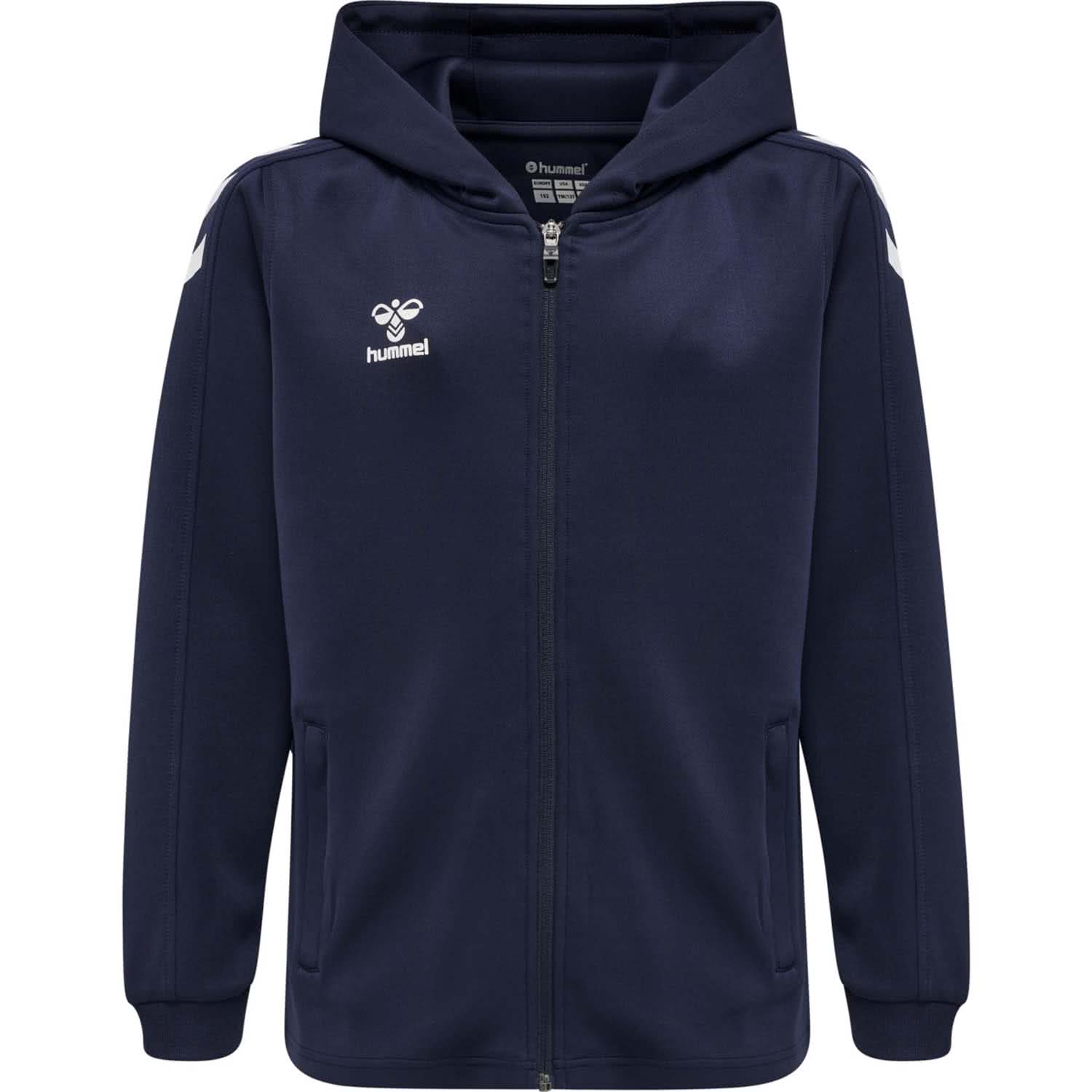 Hummel Kinder Kapuzenjacke Core XK Poly Zip Hood Sweat. Was auch immer das Wetter in petto hat, der hmlCORE XK POLY ZIP HOOD SWEAT KIDS ist der perfekte Trainingshoodie. Der Sweatstoff sorgt für ein trockenes und frisches Tragegefühl und die BEECOOL® Technologie verbessert zusätzlich die Atmungsaktivität. Der Frontreißverschluss und die Kapuze bieten auf das Wetter abgestimmte Tragemöglichkeiten. Der Bund ist elastisch und gewährleistet etwas mehr Flexibilität und Komfort, damit die Kleinen sich ganz auf ihre Übungen konzentrieren können. Der auffällige hummel® Logoaufdruck und die legendären Winkel runden den Look ab. Material: 98% Polyester, 2% Elasthan.