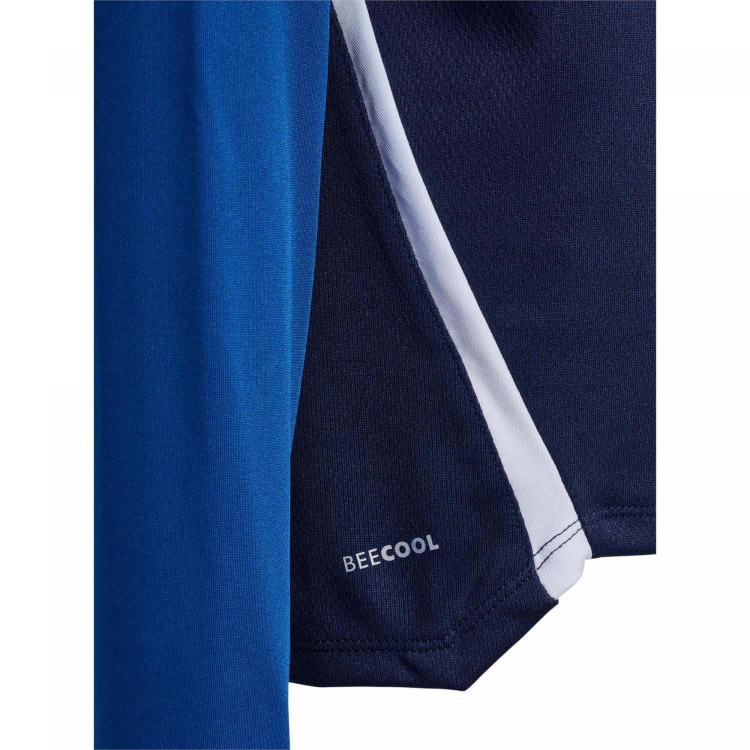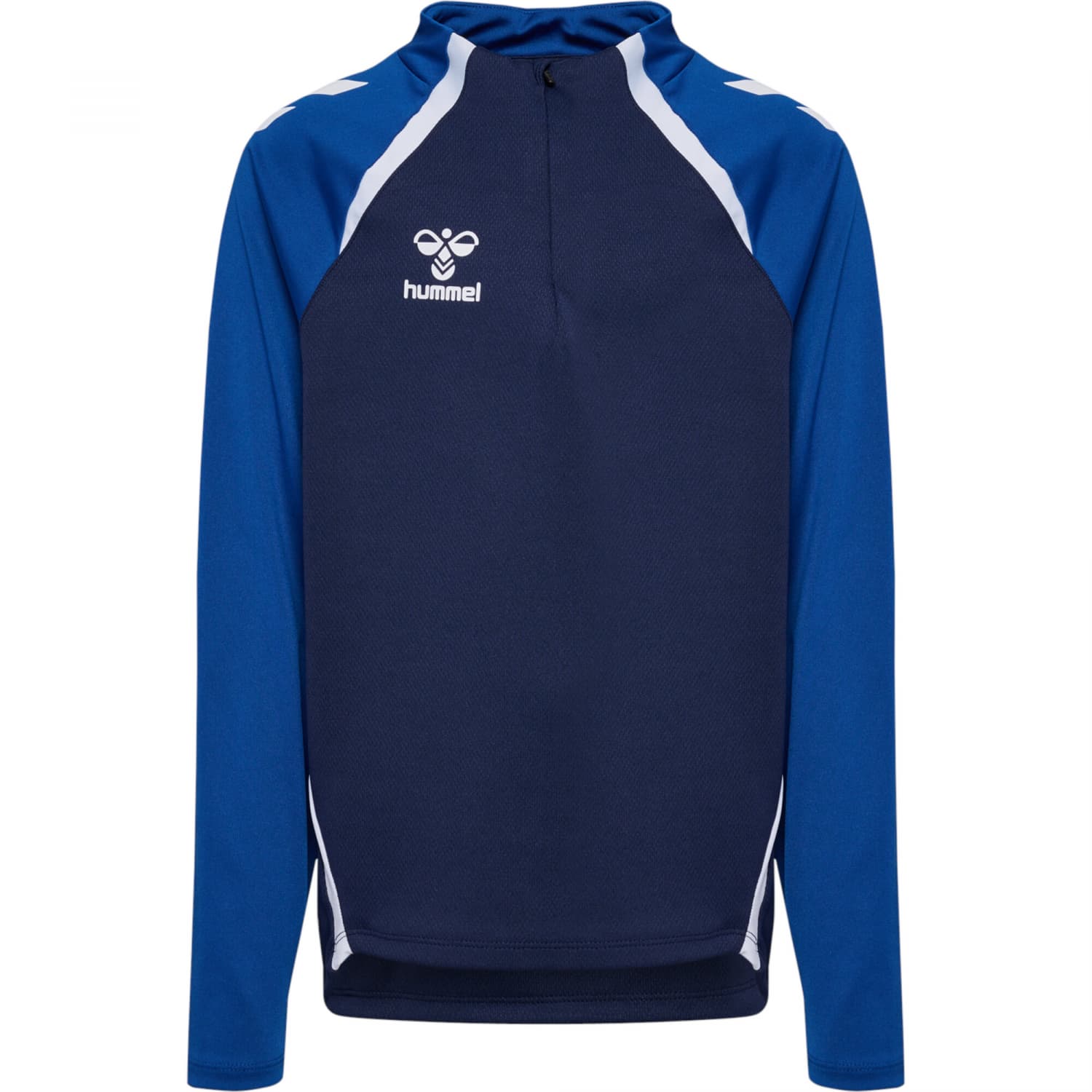 Hummel Kinder Sweatshirt LEAD 2.0 HALF ZIP. Das hmlLEAD 2.0 HALF ZIP KIDS verfügt über BEECOOL-Technologie für hohe Atmungsaktivität und schnelles Trocknen. Es hat eine normale Passform und Daumenlöcher an den Bündchen für zusätzliche Wärme. Es hat einen halben Reißverschluss auf der Vorderseite mit einer Reißverschlussgarage, um das Kinn vor Scheuern zu schützen. Winkel an den Schultern und das hummel-Logo auf der Brust vervollständigen den Look dieses langärmeligen Sporttrikots. Material: 100% Polyester.