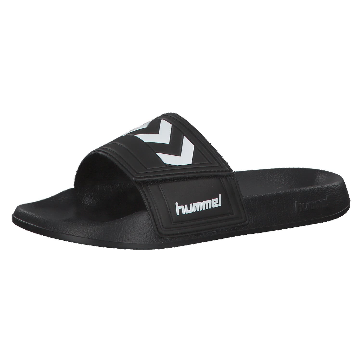 Hummel Unisex Badeschlappen Larsen Slipper VC. Der hummel® LARSEN SLIPPER ist bequem, leicht und wasserabweisend. Er kommt im klassischen Retro-Design mit harmonischen Farben und den charakteristischen hummel®-Winkeln. Die Laufsohle/Zwischensohle ist aus EVA-Schaum für Flexibilität und der Klettverschluss garantiert eine individuelle Passform. Ideal für das Schwimmbad oder für zuhause. Obermaterial: Synthetik.