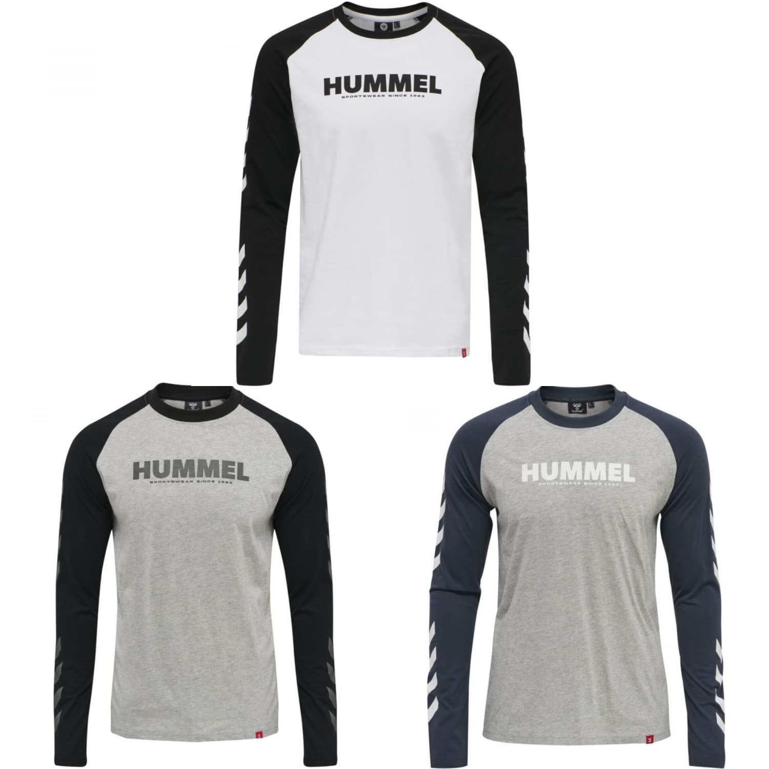 Hummel Unisex Langarmshirt Legacy Blocked Shirt. Die Raglanärmel dieses hummel® T-Shirts bieten jederzeit die bequemste Passform. Die charakteristischen gedruckten Winkel, die sich über die Länge der Ärmel mit Colour-Block-Design des hmlLEGACY BLOCKED T-SHIRT L/S erstrecken, sorgen für einen auffälligen Look, während du mit dem atmungsaktiven, saugfähigen Jersey kühl und trocken bleibst. Dieses Modell ist unisex und auf Männer angepasst. Für Frauen empfehlen wir, eine Größe kleiner als gewöhnlich zu wählen. Material: 90% Baumwolle, 10% Viskose.