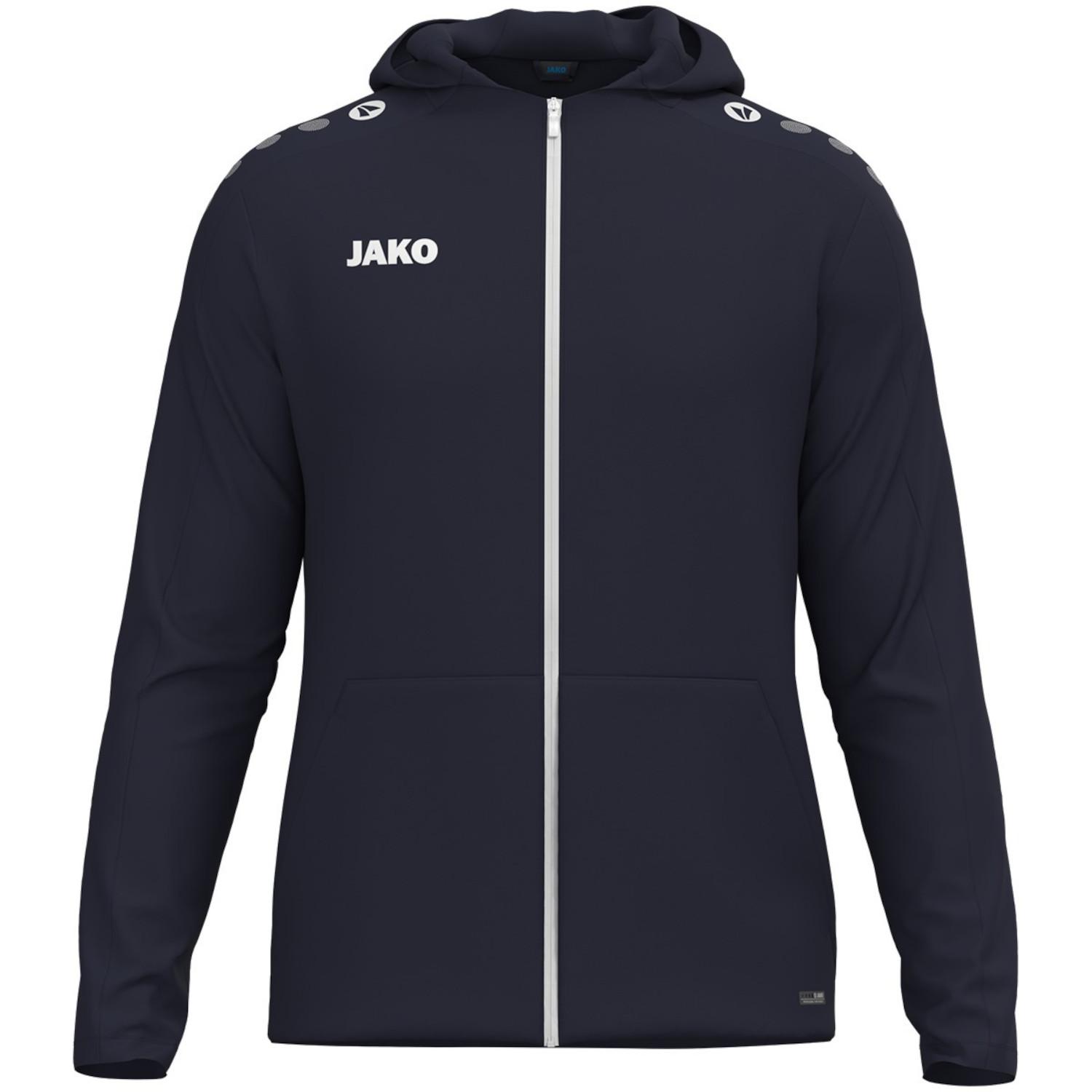 Jako Damen Kapuzenjacke One. Die Kapuzenjacke One Damen vereint sportliches Design mit hohem Tragekomfort. Die Innenseite aus Micro-Fleece sorgt für ein angenehm weiches Tragegefühl und hält dich zuverlässig warm – ideal für kühle Tage oder entspannte Stunden nach dem Training. In den aufgesetzten Taschen lassen sich Hände wärmen oder kleine Alltagsgegenstände praktisch verstauen. Gefertigt aus recyceltem Polyester, überzeugt die Jacke durch Nachhaltigkeit, Strapazierfähigkeit und Pflegeleichtigkeit. Ob beim Sport, in der Freizeit oder auf dem Weg ins Studio – diese Kapuzenjacke bietet dir Komfort, Funktion und einen modernen Look in einem. Jetzt entdecken und deinen neuen Lieblingsbegleiter für jeden Tag sichern. Material: 100% Polyester.