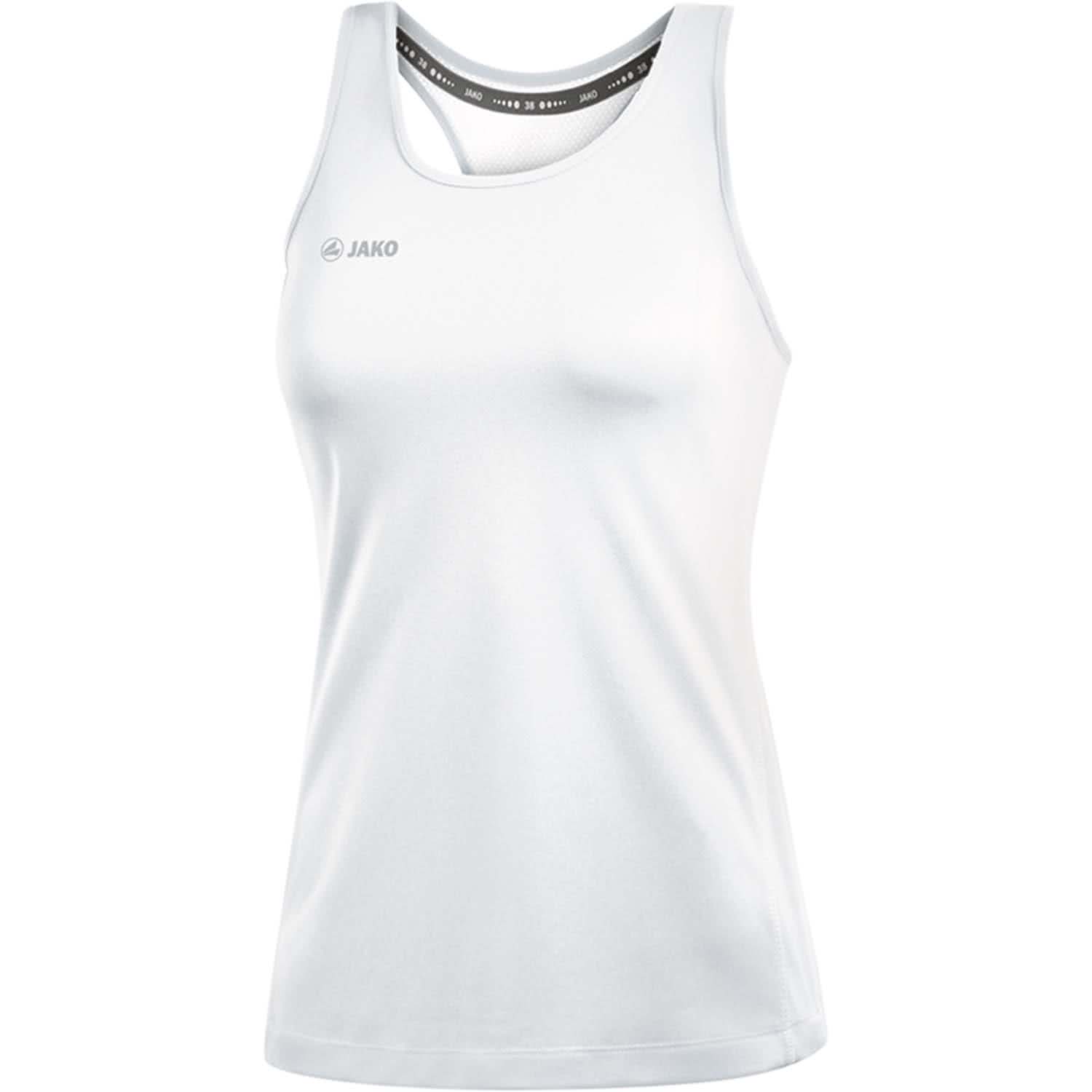 Jako Damen Laufshirt Tanktop Run 2.0. Halsausschnitt und Armloch mit elastischer Binding. Rücken aus Micro-Mesh. Rundhalskragen. Flatlock-Nähte. KEEP DRY. Spezieller Damenschnitt. Material: 100% Polyester.
