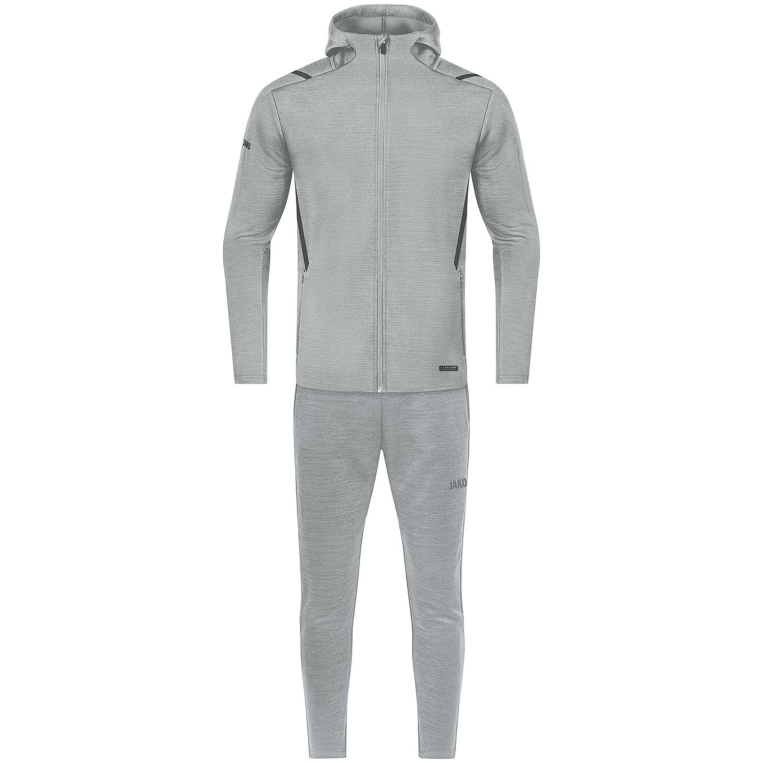 Jako Herren Freizeitanzug Challenge mit Kapuze. Performance trifft Casual. Die perfekte Kombination von funktionalen Trainings Styles und trendigen Freizeit Looks. Double Knit-Polyester. Moderne Melange Optik. Jacke: Kontrast-Tape an der Schulter - Seitliches Kontrast-Tape - Kapuze mit Kordelzug - Kordelenden in Kontrast - Verlängerter Rücken - Verdeckte Seitentaschen mit Reißverschluss. Hose: Sportiver Schnitt - Elastischer Bund mit Kordelzug - Verdeckte Seitentaschen mit Reißverschluss. Teamline Label. Material: 100% Polyester.