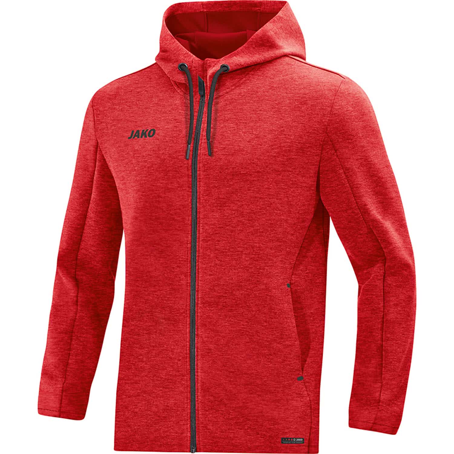 Jako Herren Kapuzenjacke Premium Basics. Die Kapuzenjacke Premium Basics für Herren. Melange Effekt. Sportiver Schnitt. Kapuze mit Kordelzug. Seitentaschen. Zippergarage. Baumwoll-Touch. Innenseite aus atmungsaktivem Interlock. Premium Label. Material: 81% Polyester, 14% Viskose, 5% Elasthan.