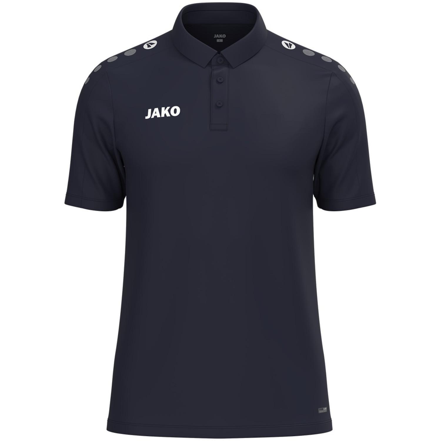 Jako Herren Polo One. Das Polo One vereint sportliches Design, Funktionalität und Nachhaltigkeit in einem. Die JAKO Dots auf der Schulter und das JAKO-Logo auf der rechten Brust verleihen dem Polo einen modernen, dynamischen Look. Dank der Keep Dry-Technologie wird Feuchtigkeit effektiv vom Körper abgeleitet, sodass du auch bei warmen Temperaturen angenehm trocken bleibst. Der klassische Polokragen mit 3-Loch Knopfleiste sorgt für einen stilvollen Auftritt und hohen Tragekomfort. Hergestellt aus recyceltem Polyester, steht das Polo für Atmungsaktivität, Strapazierfähigkeit und Nachhaltigkeit. Durch sein schlichtes Design ist es ideal zum Veredeln – perfekt für Teams, Vereine oder Unternehmen. Ob im Training, im Büro oder in der Freizeit – das Polo One überzeugt auf ganzer Linie. Jetzt entdecken und dein Polo One individuell veredeln lassen. Material: 100% Polyester.