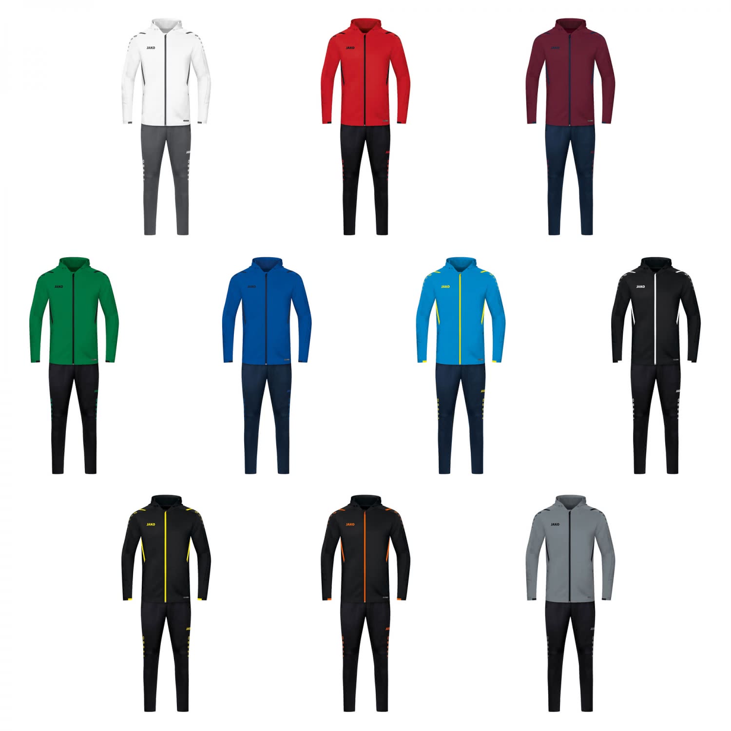 Jako Herren Trainingsanzug Challenge mit Kapuze. Performance trifft Casual. Die perfekte Kombination von funktionalen Trainings Styles und trendigen Freizeit Looks. Double-Stretch-Knit. Funktionaler Materialmix. Jacke: Kapuze - Zippergarage - Kontrast-Tape an der Schulter - Seitliches Kontrast-Tape - Seitentaschen mit verdecktem Reißverschluss - Elastischer Kontrasteinsatz an Ärmelabschluss und Saum - Verlängerter Rücken. Hose: Seitentaschen mit Reißverschluss - Seitliches Kontrast-Tape - Elastischer Bund mit Kordelzug - Einsätze: 95 % Polyester, 5 % Elasthan. Teamline Label. Material: 95% Polyester, 5% Elasthan.