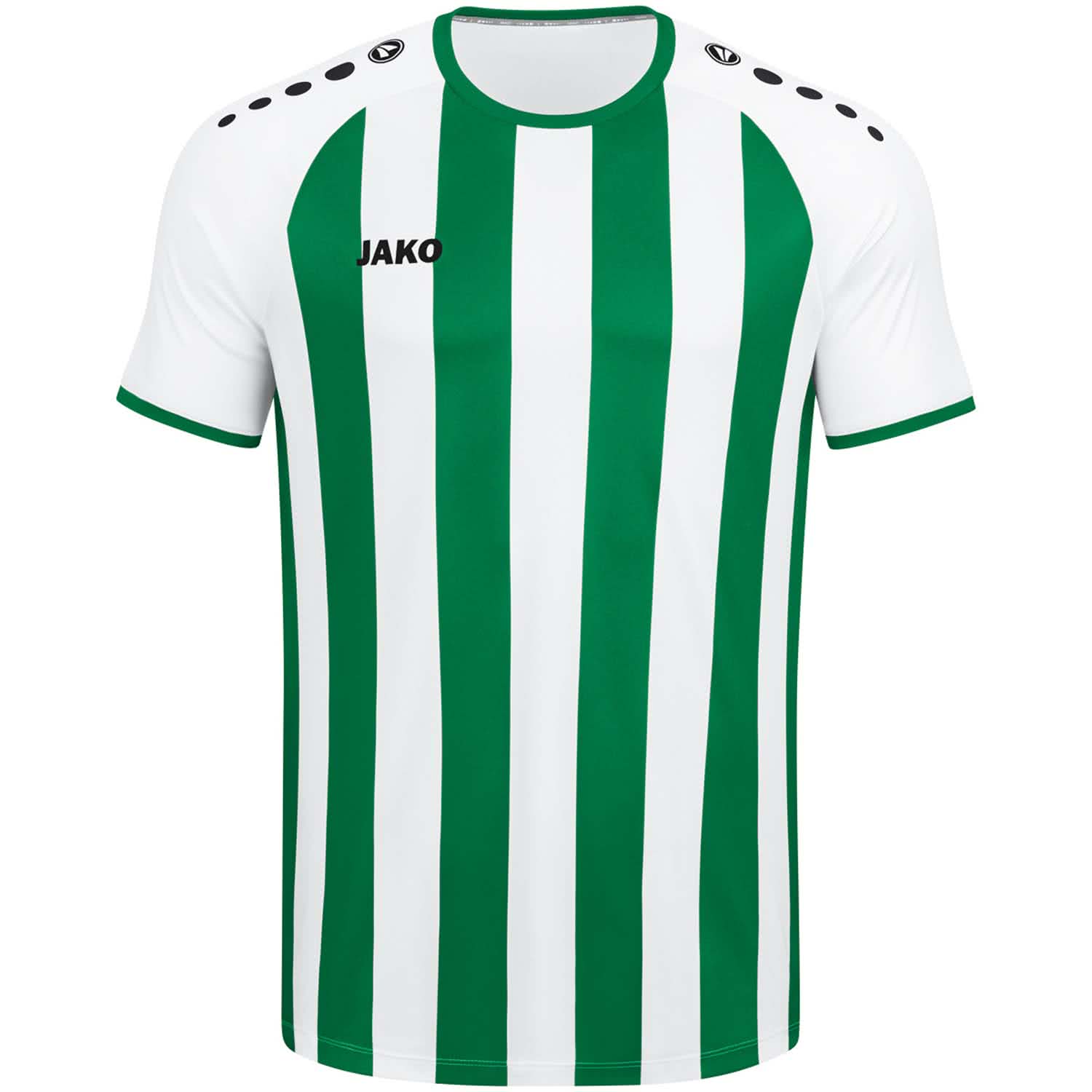 Jako Herren Trikot Inter KA. Das JAKO Trikot Inter Kurzarm besteht zu 100 % aus recyceltem Polyester. Das Interlock-Polyester ist strapazierfähiger und elastischer als vergleichbare Stoffe wie etwa Single Jersey. Der Rücken aus Micro-Mesh macht das Streifen-Trikot besonders atmungsaktiv. Material: 100% Polyester.