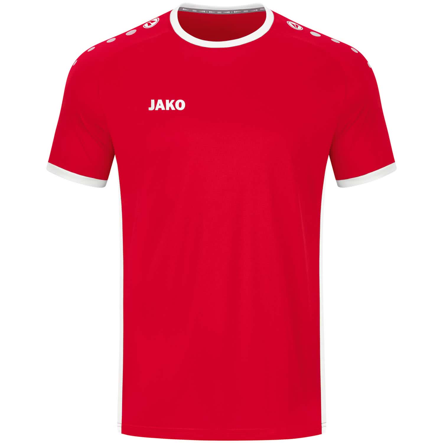 Jako Kinder Trikot Primera KA. Das JAKO Trikot Primera KA passt mit dem minimalistischen Design in zwölf verschiedenen Farbvarianten zu jedem Verein. Die Kontrasteinsätze an den Seiten sowie an den Ärmel- und Halsabschlüssen machen das Aussehen perfekt. Das Material aus Polyester-Interlock ist schnelltrocknend und transportiert Feuchtigkeit vom Körper weg nach außen. Du kannst das Trikot Primera Kurzarm problemlos mit der Sporthose Manchester 2.0 und dem Stutzenstrumpf Glasgow 2.0 zu einem Trikotsatz kombinieren und so dein ganzes Team ausstatten. Material: 100% Polyester.