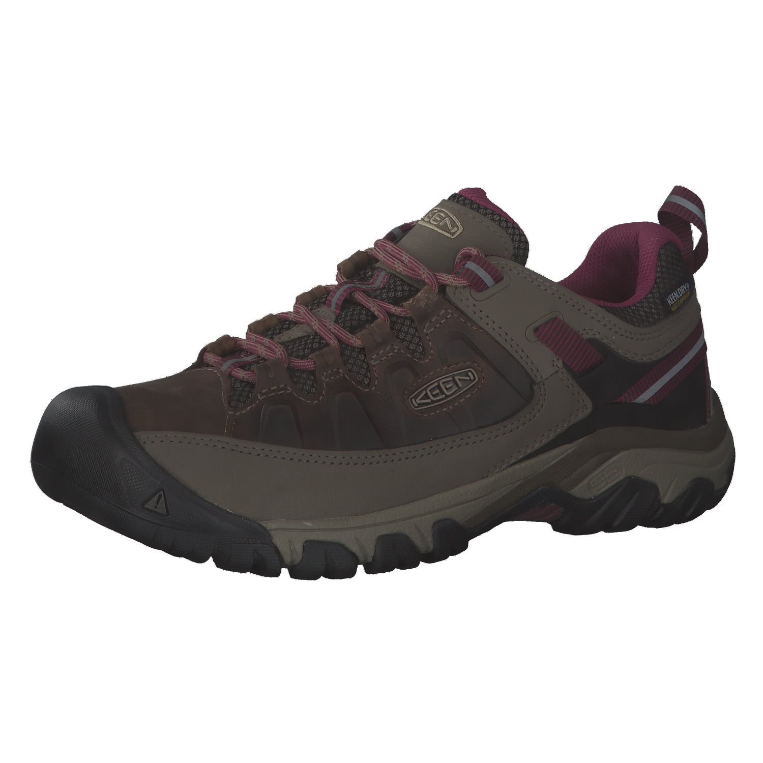Keen Damen Wanderschuhe Targhee III WP. Dieser Wanderschuh für Damen ist so bequem wie unser Originalmodell Targhee mit einem überzeugenden Design. Er ist atmungsaktiv und die unterstützende All-Terrain-Außensohle bietet zusätzliche Stabilität. Unsere firmeneigene wasserdichte, atmungsaktive Membran, speziell entwickelt für die Verwendung in Schuhen. Das Fußbett des Schuhs ist anatomisch geformt, unterstützt perfekt das Fußgewölbe und passt sich den natürlichen Konturen des Fußes an. Obermaterial aus Leder und Performance-Mesh. KEEN.ALL-TERRAIN Gummi-Außensohle für sicheren Grip. Dual-Density EVA-Zwischensohle für Dämpfung. Obermaterial: Leder, Sonstiges Material. Futter und Decksohle: Sonstiges Material. Laufsohle: Sonstiges Material.