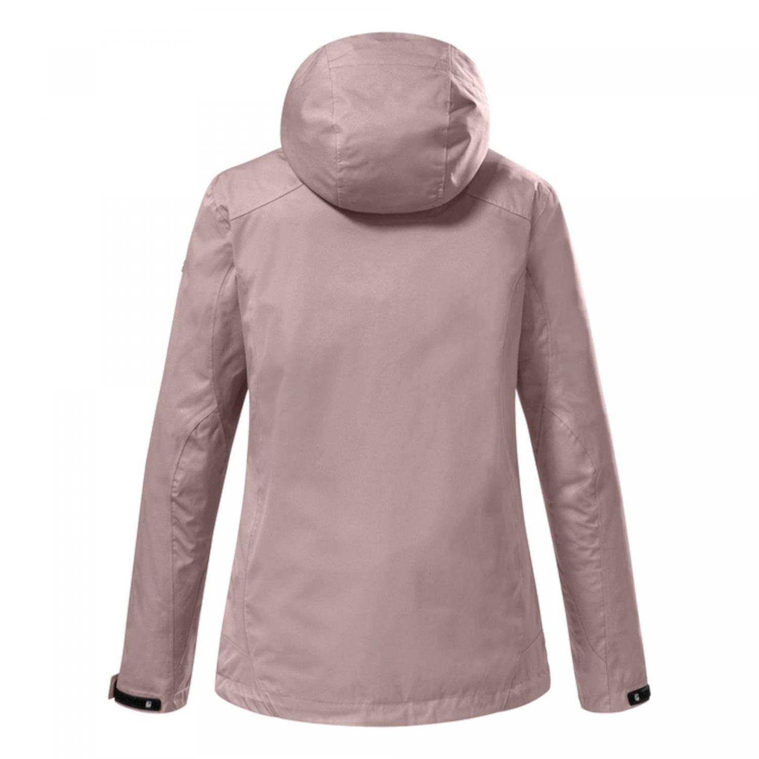killtec Damen Jacke KOS 133. Die Damen Funktionsjacke von killtec schützt zuverlässig vor Wind und Regen. Sie ist durch verschweißte Nähte 100% wasser- und winddicht mit einer 10.000 mm Wassersäule. Die abzippbare Kapuze lässt sich individuell verstellen. Die Ärmelbündchen lassen sich mit Klettverschlüssen verstellen. Der Reißverschluss ist mit einem Kinnschutz versehen, der das Einklemmen der Haut verhindert. Die beiden Seitentaschen sind mit Zippern versehen, eine Innentasche bietet zusätzlichen Stauraum. killtec liegt es besonders am Herzen, die Kollektionen nachhaltiger und zukunftsfähiger zu machen. So setzt killtec verstärkt auf verantwortungsbewusstere Herstellungsverfahren. Diese Jacke ist daher PFC-frei. 10.000 mm Wassersäule. Wasserdampfdurchlässigkeit 3.000. Material: 100% Polyester.