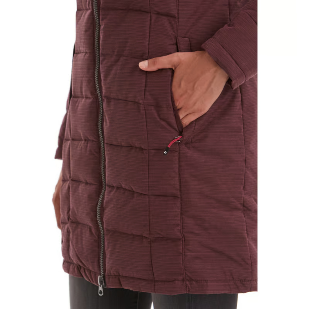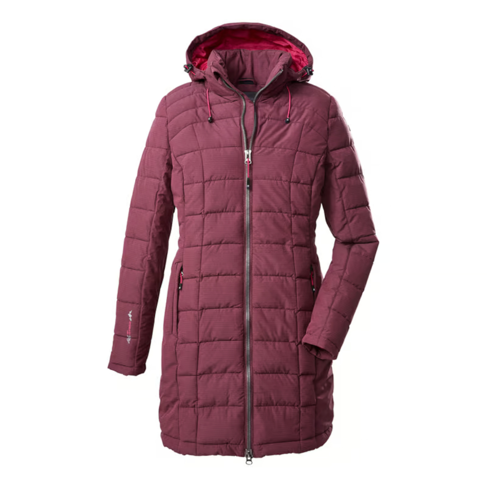 Damen Steppparka Skane WMN Quilted PRK. Der moderne und zugleich zeitlose Parka in Daunenoptik von killtec mit abzippbarer, weitenregulierbarer Kapuze ist ein absolutes Allroundtalent. Er hält dich schön warm und überzeugt durch kleine Highlights, wie kontrastfarbene Accessoires. Darüber hinaus verfügt der Parka über hochfunktionelle Eigenschaften. Mit einer 10.000 mm Wassersäule ist er wasserabweisend und dank PU-Laminat auch winddicht. Zudem ist er mit einer 3.000 g/m²/24 h Wasserdampfdurchlässigkeit atmungsaktiv. Die praktischen Eingrifftaschen lassen sich mit Reißverschlüssen schließen und der 2-Wege-Frontreißverschluss ist besonders komfortabel. Bestelle bitte eine Größe größer, da der Artikel klein ausfällt. Futter: 100% Polyester. Füllung: 100% Polyester. Material: 100% Polyester.