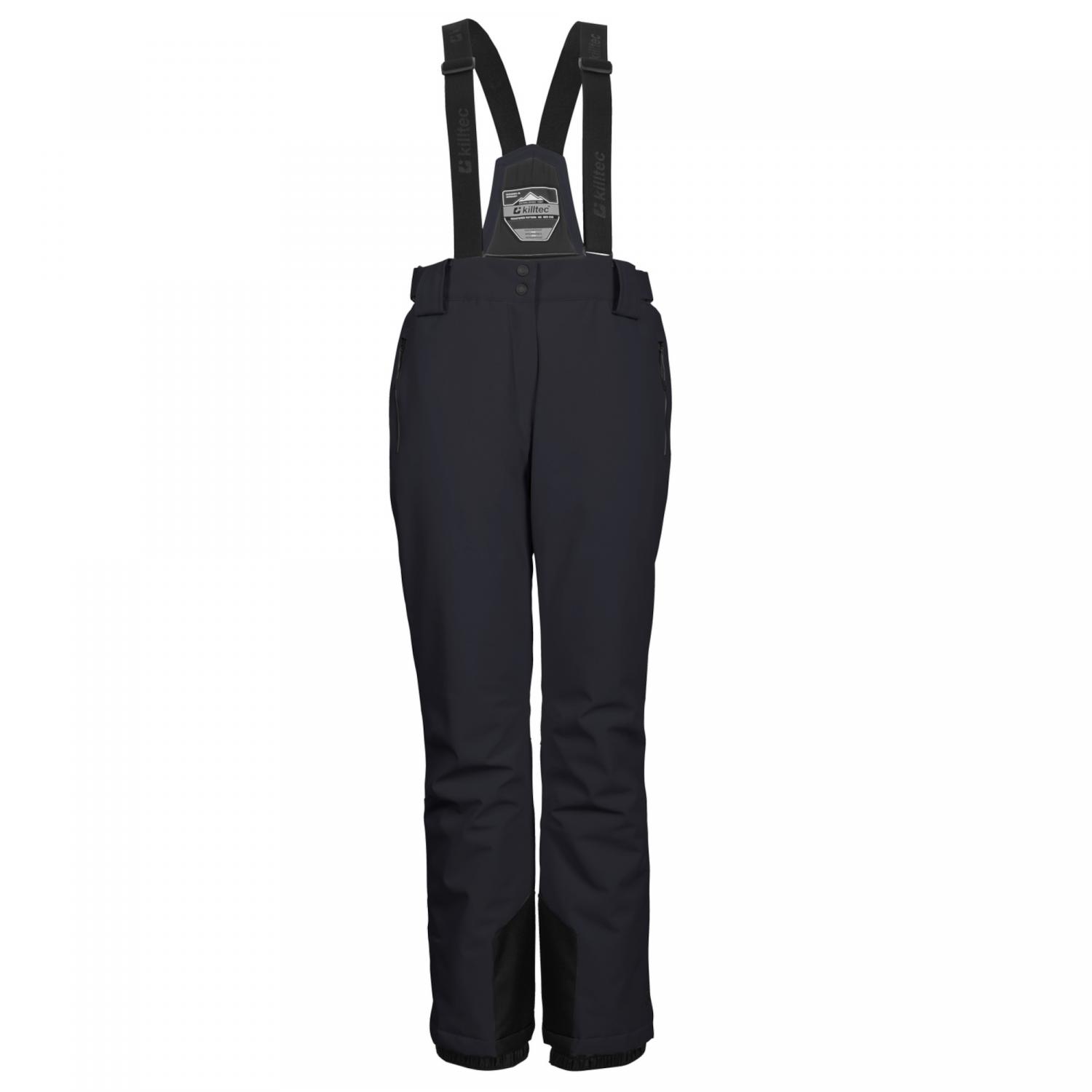 killtec Damen Skihose KSW 249 WMN SKI PNTS ERIELLE. Mit der killtec Damen Skihose sind dem Wintersportvergnügen keine Grenzen gesetzt. Die Hose hat verschweißte Nähte und ist wind- und wasserdicht mit einer Wassersäule von 10.000 mm. Die Beschichtung sorgt für einen guten Ausgleich zwischen Isolation und Atmungsaktivität. Die Taillenweite lässt sich mithilfe von Klettverschlüssen regulieren und die verstellbaren Träger sind bei Bedarf abnehmbar. Schneefänge an den Hosenbeinen verhindern das Eindringen von Nässe. Zudem ist die Hose mit zwei Zippertaschen sowie einem Kantenschutz an den Beinabschlüssen ausgestattet. Die Reißverschlüsse an den Beinabschlüssen erleichtern außerdem das An- und Ausziehen. killtec liegt es besonders am Herzen, die Kollektionen nachhaltiger und zukunftsfähiger zu machen. So setzt killtec verstärkt auf verantwortungsbewusstere Herstellungsverfahren. Diese Skihose wurde daher PFAs-frei imprägniert. Material: 93% Polyester, 7% Elasthan.