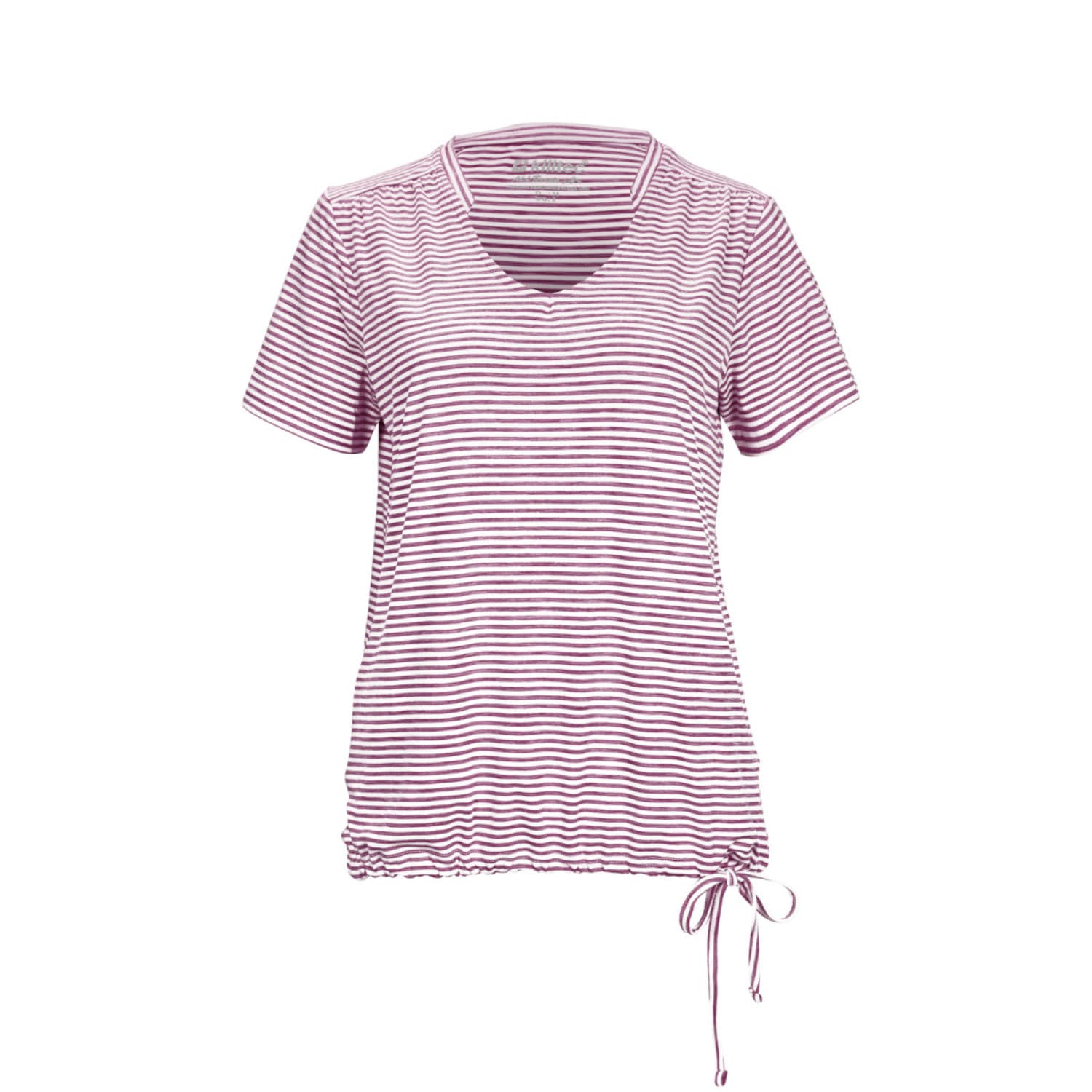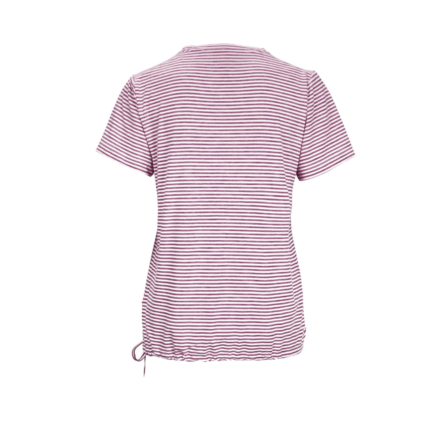 Killtec Damen T-Shirt Lilleo. Ein sportives, gestreiftes T-Shirt aus feuchtigkeitstransportierendem, schnell trocknendem Funktionsmaterial. Es überzeugt durch seine leichte Qualität und einen angenehmen Tragekomfort. Außerdem wirkt das T-Shirt durch das Bändchen am Saum figurumschmeichelnd. Ob für Outdooraktivitäten oder in der Freizeit, das schlichte Design und der Stretchanteil machen es vielseitig einsetzbar und kombinierbar. Feuchtigkeitstransportierend. Schnell trocknend. Material: 90% Polyester, 10% Elasthan.