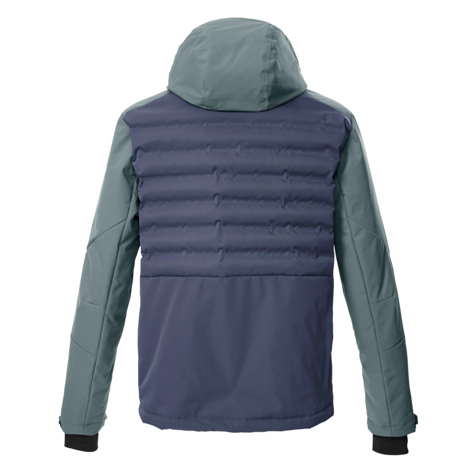 killtec Herren Skijacke KSW 72 MN SKI JCKT. Die Herren Skijacke von killtec besticht durch die moderne Hybridoptik und funktionale Eigenschaften. Der Materialmix, die verklebten Kammern und das Colourblock Design fallen auf. Die Jacke ist winddicht und wasserabweisend mit einer 10.000 mm Wassersäule und atmungsaktiv mit einer Wasserdampfdurchlässigkeit von 3.000 g/m²/24 h. Alle kritischen Nähte sind verschweißt. Ein rutschfester Schneefang schützt vor dem Eindringen von Wind und Kälte. Zahlreiche Taschen bieten Platz für Skipass, Skibrille und Co. An den verstellbaren Ärmelabschlüssen befinden sich Bündchen mit Daumenlöchern. Die Kapuze ist regulierbar und lässt sich bei Bedarf abnehmen. Der wasserdichte Frontreißverschluss ist mit einem Kinnschutz versehen, um ein Einklemmen der Haut zu verhindern. Futter: 100% Polyester. Füllung: 100% Polyester. Obermaterial: 100% Polyester.