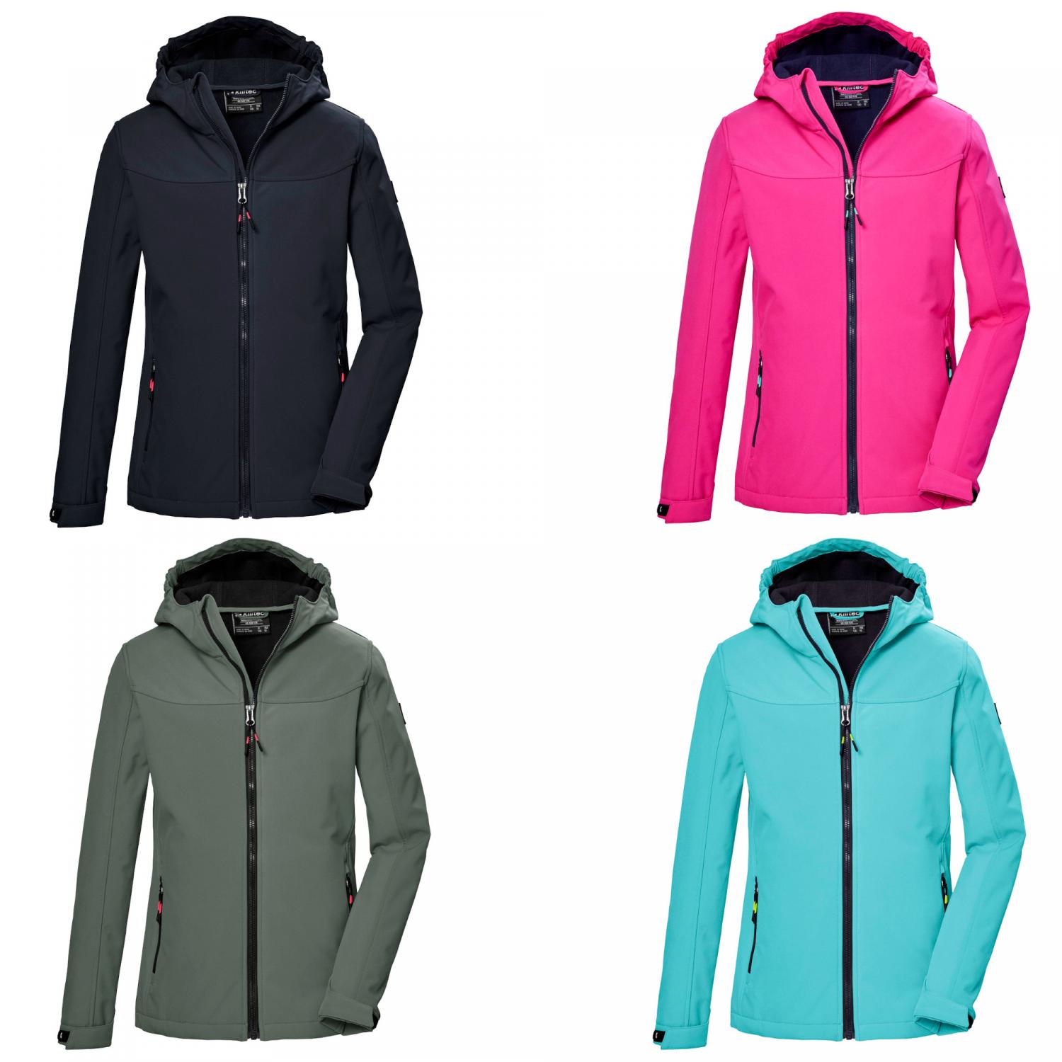 killtec Mädchen Softshelljacke KOS 145. Die killtec Mädchen Softshelljacke mit Kapuze ist der perfekte Begleiter an kühlen Sommertagen und in der Übergangszeit. Sie ist wind- und wasserabweisend mit einer 10.000 mm Wassersäule. Die Jacke hat einen atmungsaktiven Mesh-Einsatz. Der Rückenbereich ist mit weichem Fleece gefüttert. Ärmelbündchen und Saum sind individuell regulierbar. Die zwei Seitentaschen sind mit Zippern verschließbar, sodass nichts verloren geht. Der Frontreißverschluss hat einen praktischen Kinnschutz. Die Jacke ist zudem mit reflektierenden Elementen ausgestattet. killtec liegt es besonders am Herzen, die Kollektionen nachhaltiger und zukunftsfähiger zu machen. So setzt killtec verstärkt auf verantwortungsbewusstere Herstellungsverfahren. Diese Jacke wurde daher PFAS-frei imprägniert. Material: 100% Polyester.