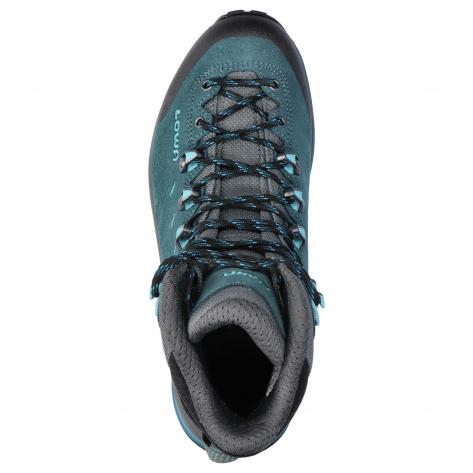 Lowa Damen Wanderschuhe RANDIR GTX MID Ws. Leicht soll er sein und möglichst sportlich aussehen: Was nach reinem Wunschdenken klingt, wird endlich zum sehenswerten Standardmaß moderner Trekkingschuhe. Sportliche Linienführung, seitlich platzierte Prägungen mit farbigen Stickelementen und ein komplett neues Design machen den RANDIR GTX MID zum Vorreiter einer völlig neuen Generation leichter, wiederbesohlbarer Wanderschuhe. Davon zeugt der aus Spaltleder und Textil gefertigte Schaft. Die darin verarbeitete GORE-TEX-Membran hält die Füße trocken und sorgt dank ihrer Atmungsaktivität für ein angenehmes Innenschuhklima. In Kombination mit der weit nach vorn gezogenen Zwei- Zonen-Schnürung inkl. Klemmhaken und X-LACING Light kommt auch der Tragekomfort nie zu kurz. Während die im „Chunky Style“ gestaltete LOWA® DYNAPU®+ Zwischensohle für optimale Dämpfung und ein harmonisches Abrollverhalten sorgt, gewährleistet die VIBRAM CORNERSTONE-Laufsohle mit ausgeprägter Absatzkante und definierter Profilausrichtung hervorragenden Grip in jedem Terrain. Die robuste PU-Folie an Ferse und Fußspitze rundet das Gesamtkonzept ab. Obermaterial: Sonstiges Material, Textil. Futter und Decksohle: Textil. Laufsohle: Sonstiges Material.