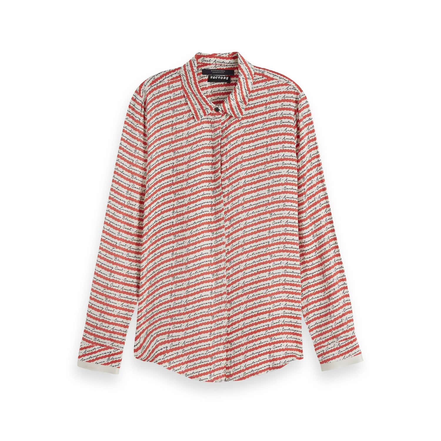 Damen Bluse mit Allover-Print. Knopfverschluss und geknöpfte Manschetten runden das Design ab. Klassischer Kragen. Dieser Artikel darf nur trocken gereinigt werden. Material: 100% Viskose.