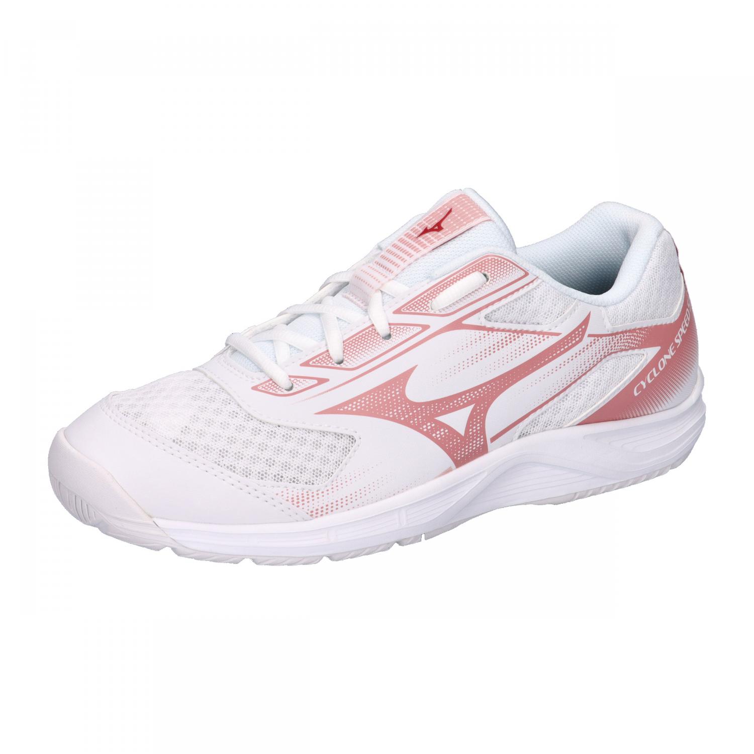 Mizuno Damen Hallenschuhe CYCLONE SPEED 5. Mit diesem Schuh, der für Anfänger entwickelt wurde, kannst du deine Volleyballfähigkeiten verbessern, vor allem in der Junior- und Senior High School. Der Schuh vereint eine Reihe von einsteigerfreundlichen Eigenschaften, darunter ein geringes Gewicht, ein angenehmes Tragegefühl, eine flache Sohle und hervorragende Flexibilität. Er ist mit einem Leisten ausgestattet, der sich an eine Vielzahl von Fußformen anpassen lässt. Die hochflexible und dennoch stabile flache Sohle hilft den Spielern, ein Gefühl für den Platz zu bekommen und sich trotzdem leicht zu biegen. Der Leisten ist komfortabler als bei den Vorgängermodellen und lässt sich leicht an die Füße einer Vielzahl von Spielern anpassen. ・Hochflexible Sohlenkonstruktion, die anfängerfreundlich ist und sich auch für Spieler, die ihre körperliche Kraft noch entwickeln, leicht biegen lässt. ・Extrem stabile, flache Sohle, die dem Spieler hilft, mit dem ganzen Fuß ein Gefühl für den Platz zu bekommen. Herausnehmbare Cup-Einlegesohle, die sich der Form des Fußes anpasst. Obermaterial: Textil, Sonstiges Material. Futter und Decksohle: Textil. Laufsohle: Sonstiges Material.