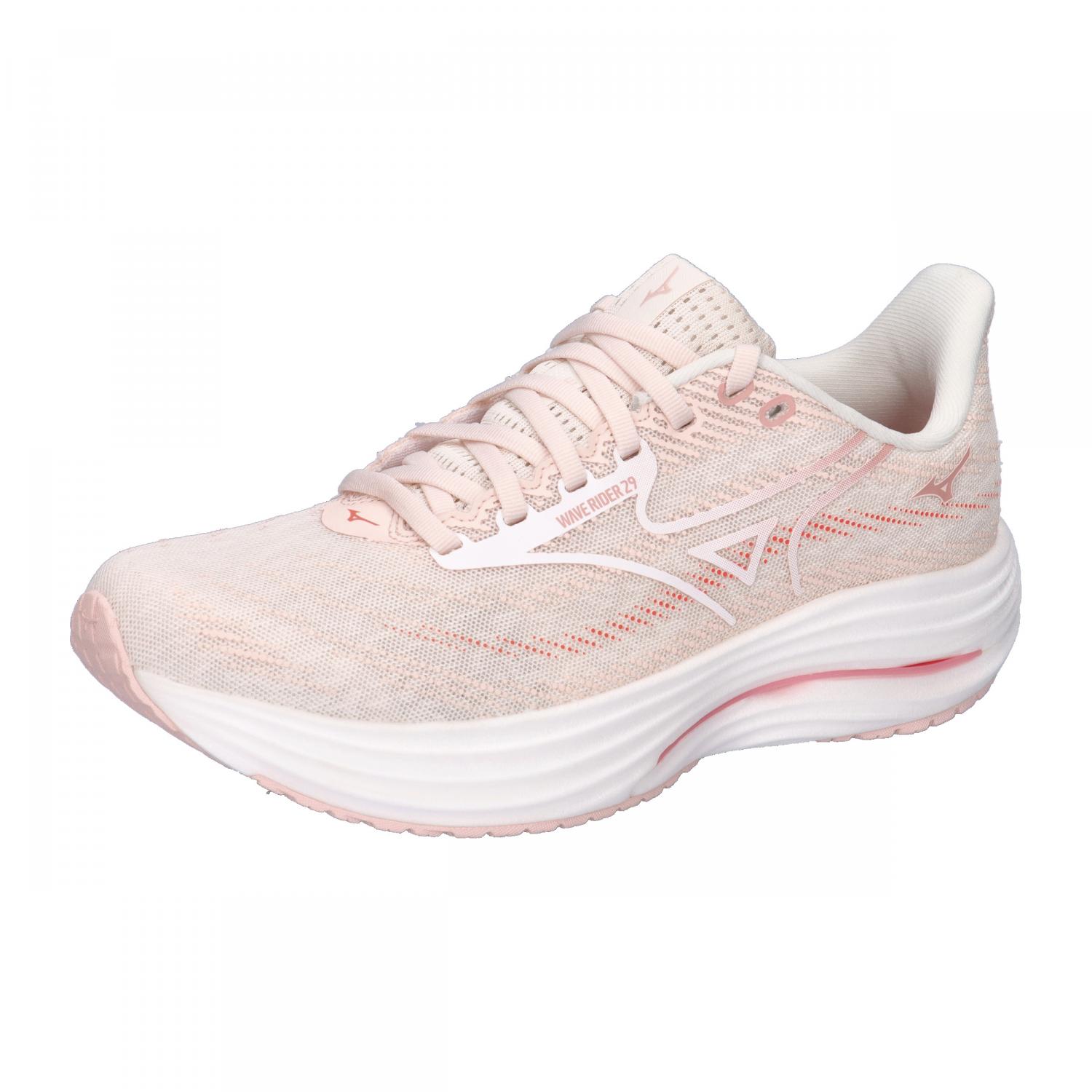 Mizuno Damen Laufschuhe WAVE RIDER 29. Der Mizuno Wave Rider 29 ist entworfen, um maximalen Komfort, Stabilität und Leistung für Läufer aller Niveaus zu bieten. Mit der fortschrittlichen MIZUNO ENERZY NXT Technologie erhalten Sie zusätzliche Energie-Rückgewinnung und eine weiche Landeplattform, die jeden Schritt angenehmer macht. Die Wave Plate Technologie verbessert die Stabilität und sichert einen reibungslosen Übergang von der Ferse zum Zeh. Der Wave Rider 29 hat ein 12mm Fersen-Drop. Er ist ein haltbarer, neutraler Mengentrainingsschuh, der gebaut ist, um viele Kilometer zu bewältigen. MIZUNO ENERZY NXT: Technologie in der Ferse, die unglaubliche Energie-Rückgewinnung und weiche Landeplattform bietet. MIZUNO WAVE Technologie: Pflanzen-basierte Wave Plate Technologie, die die Stabilität verbessert. Jacquard Air Mesh Obermaterial. Propulsive Vorfuß: Erhöht die Reaktivität und den Antrieb vom Mittelstand zum Abdruck. Nachhaltigkeit: Hergestellt mit 90% recyceltem Inhalt und ist vegan. Gewicht: 242 g. Obermaterial: Textil, Sonstiges Material. Futter und Decksohle: Textil. Laufsohle: Sonstiges Material.