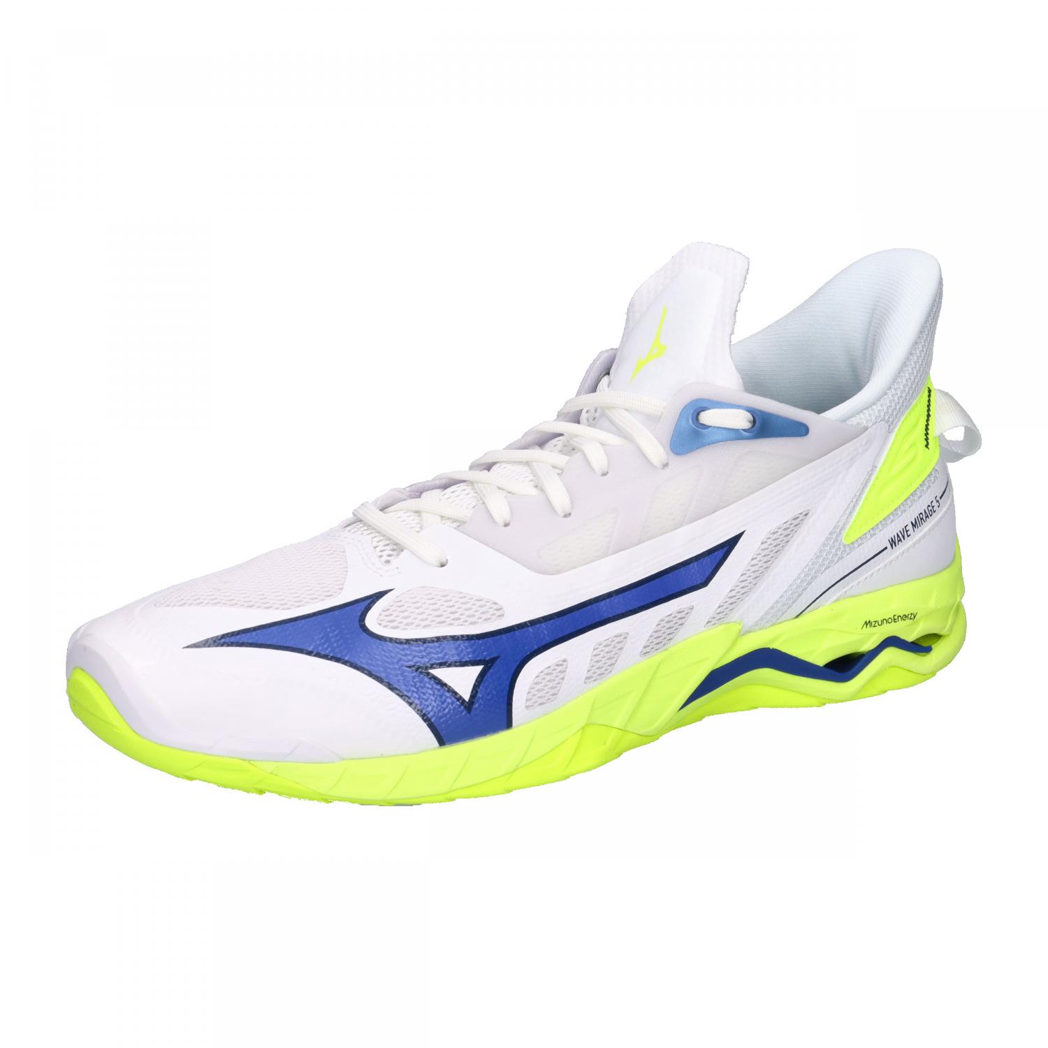Mizuno Unisex Handballschuhe WAVE MIRAGE 5. Dieser federleichte Schuh ist der perfekte Begleiter für die Geschwindigkeitsanforderungen von Flügelspielern. Dank der neuen innovativen Bootie-Konstruktion bietet der Wave Mirage 5 eine erstklassige Passform und ein bodennahes Tragegefühl. Bewege dich frei auf dem Platz mit diesem unglaublich leichten Modell. Vorteile Die Mizuno Wave-Technologie sorgt für dynamische Dämpfung und Agilität.Die Kombination aus PoWnCe und MIZUNO ENERZY in der Zwischensohle sorgt für hervorragende Reaktionsfähigkeit und Energierückgabe.Die D-Flex Groove-Sohle sorgt für eine unvergleichliche Beschleunigung und passt sich den Bewegungen des Fußes auf natürliche Weise an.Die innovative neue Bootie-Konstruktion mit einer getrennten Stretch-Innen- und Außenschicht sorgt für eine erstaunliche Passform, die sich perfekt an die Kontur Ihrer Füße anpasst. Obermaterial: Textil, Sonstiges Material. Futter und Decksohle: Textil. Laufsohle: Sonstiges Material.
