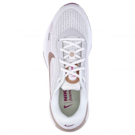 Nike Damen Laufschuhe Journey Run Women s Road. Genieße jeden Schritt, jede Strecke und jeden Spaziergang mit dem Nike Journey Run. Dank extra hoher Schaumstoffstapel und superweicher Dämpfung verlierst du auch beim Laufen auf hartem Asphalt nie dein Lächeln. Außerdem ist er so unglaublich bequem, dass du es nach dem Training kaum erwarten kannst, ihn wieder anzuziehen. Das speziell entwickelte Mesh sorgt für ein sicheres Tragegefühl. Zusätzliche Dämpfung im Fersenbereich und weiche Berührungspunkte an der Lasche und am Kragen bringen zusätzlichen Komfort. Die Außensohle aus Gummi bietet zuverlässige Traktion auch bei großen Distanzen. Obermaterial: Textil, Sonstiges Material. Futter und Decksohle: Textil. Laufsohle: Sonstiges Material.