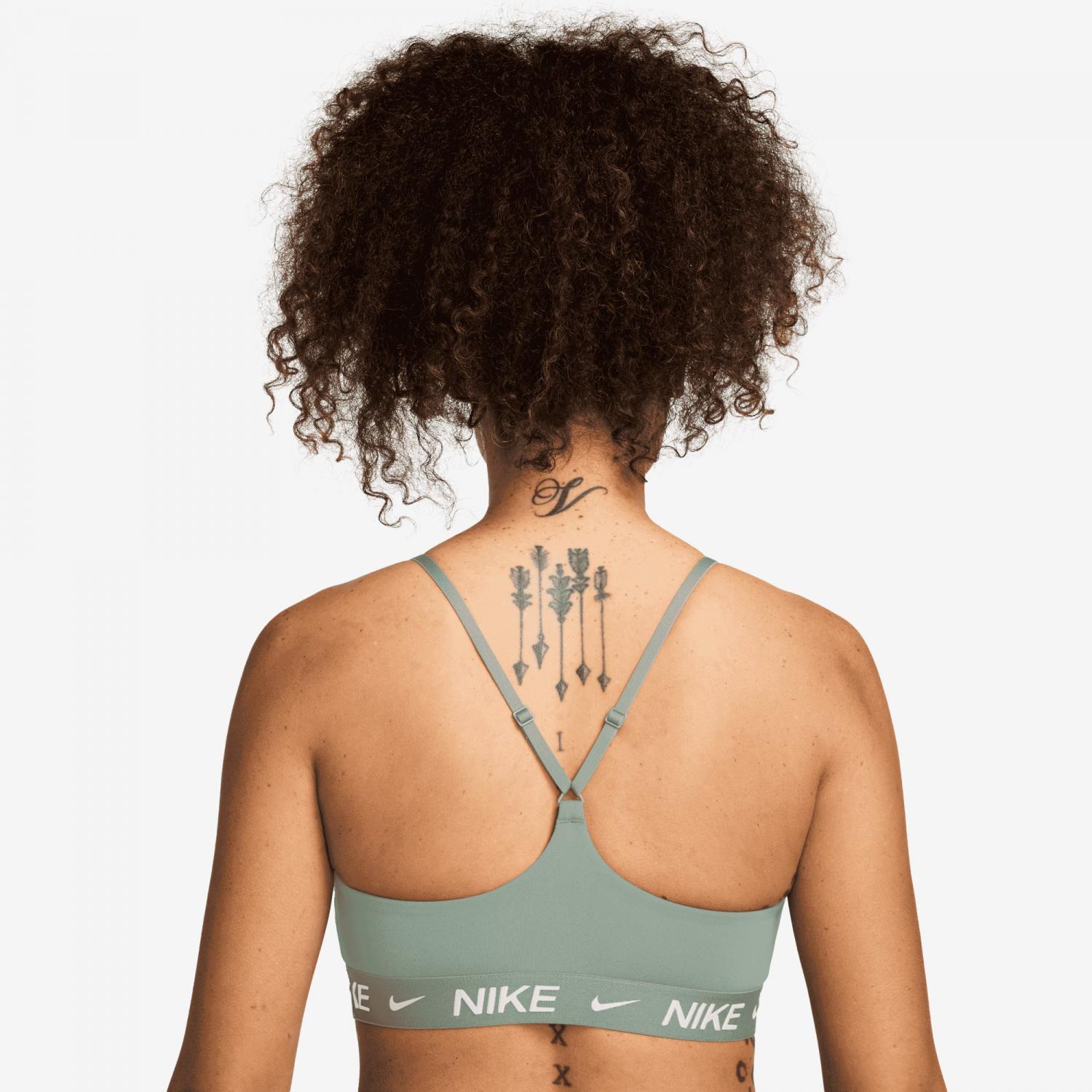 Nike Damen Sport BH Indy Light Support. Mit diesem schlanken, flachen Sport-BH kannst du dich immer und überall frei entfalten. Der leichte Halt ermöglicht ein angenehmes Tragegefühl mit viel Bewegungsfreiheit, sodass der Sport-BH ideal für Workouts mit geringer Belastung oder ganztägigen Tragekomfort geeignet ist. Das glatte, schnell trocknende Material sorgt für einen perfekten Look, damit du den Sport-BH so tragen kannst, wie du willst. Material: 78% Polyester, 22% Elasthan.