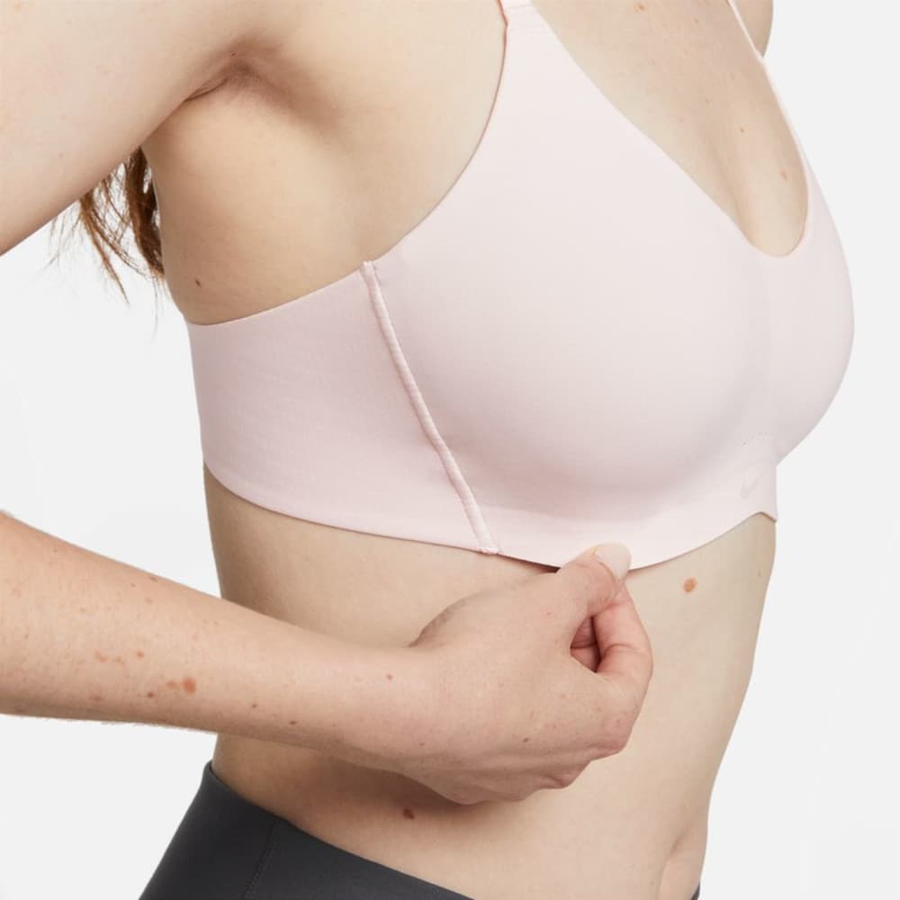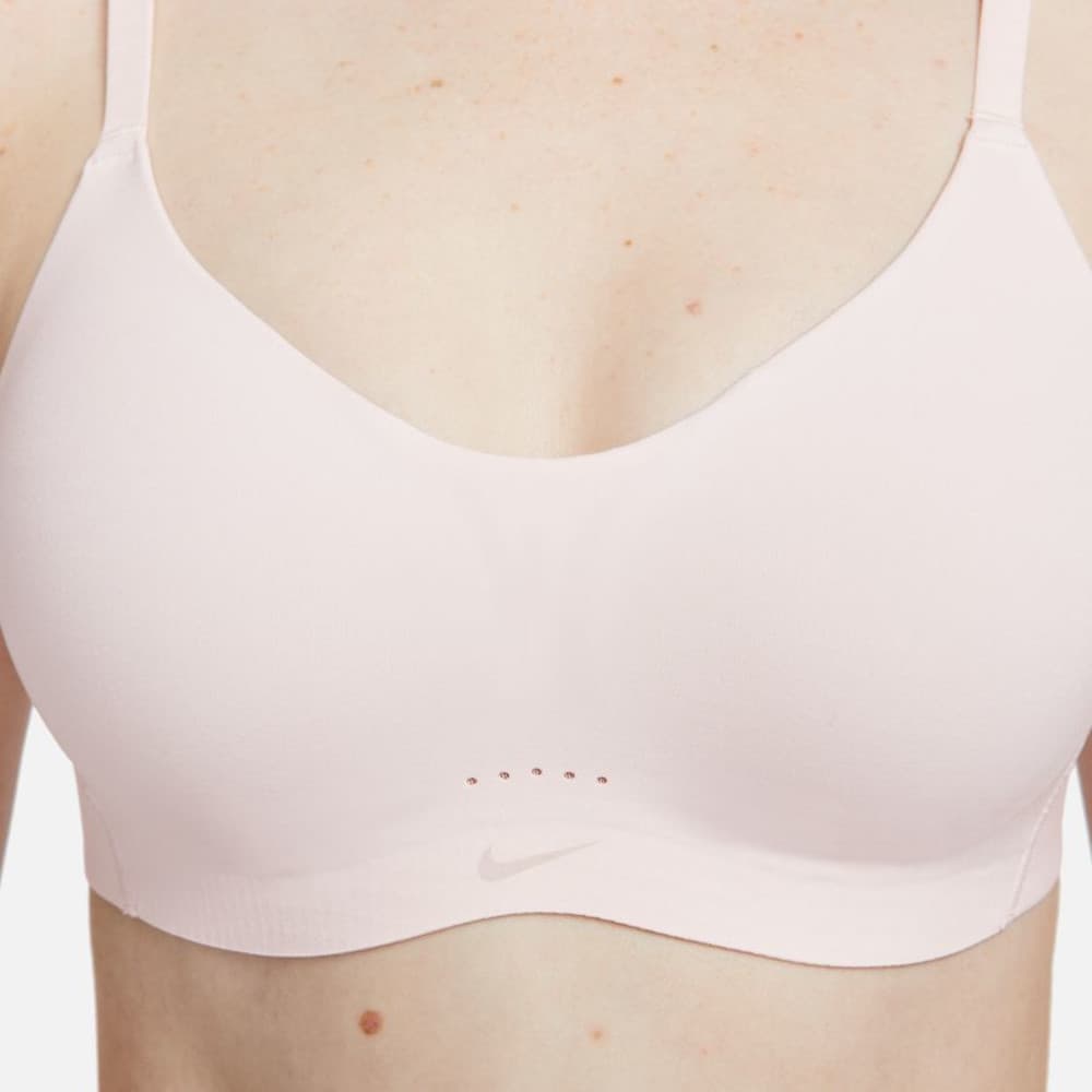 Für die Abenteurer, die nur mit dem Notwendigsten um die Welt reisen. Diejenigen, die sich nicht scheuen, Outfits öfter zu tragen und die ihren Style kennen. Mit dem Nike Alate Minimalist BH genießt du ganztägigen Halt, ohne auf Tragekomfort zu verzichten. Er besticht durch ein einzigartiges Polstererlebnis, vollständig verstellbare Träger und ein flaches Design, das alles mitmacht. Mit weichem, schweißableitendem Material hält dich dieser BH den ganzen Tag lang trocken. Dieses Produkt besteht zu mindestens 50 % aus recycelten Polyesterfasern. Ein herkömmlicher Klettverschluss auf der Rückseite und verstellbare Träger verleihen diesem BH das vielseitige Tragegefühl, das du brauchst, egal ob du den ganzen Tag lang unterwegs bist oder es dir gemütlich machst. Mit genau dem richtigen Stretch beim Tragen erlangt der BH zwischen den Einsätzen seine Form zurück und behält sie bei, damit er jedes Mal perfekt sitzt. Das unglaublich leichte, angeraute Material und das abgerundete Band passen sich deinen Bewegungen an. Superweiches Mesh innen sorgt für ein leichtes, atmungsaktives Tragegefühl. Der untere Ausschnitt und die dünneren Träger gewährleisten minimale Abdeckung, ohne dabei den Halt zu beeinträchtigen. Die Nike Dri-FIT-Technologie leitet Schweiß von der Haut ab, wodurch er schneller verdunstet, und ermöglicht so trockenen Tragekomfort. Perforationen vorne in der Mitte sorgen für Atmungsaktivität in diesem wärmeintensiven Bereich. Elastische, weiche, speziell entwickelte Polster sorgen für rutschfesten Halt bei Bewegungen. Die Sanuhr-Form zwischen den Körbchen sorgt für zusätzliche Atmungsaktivität. Material: 59% Polyester, 41% Elasthan.